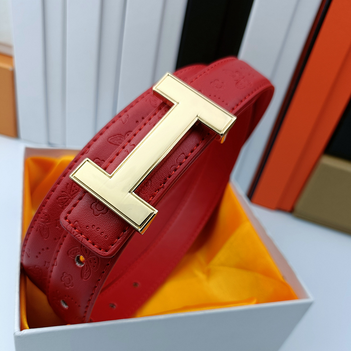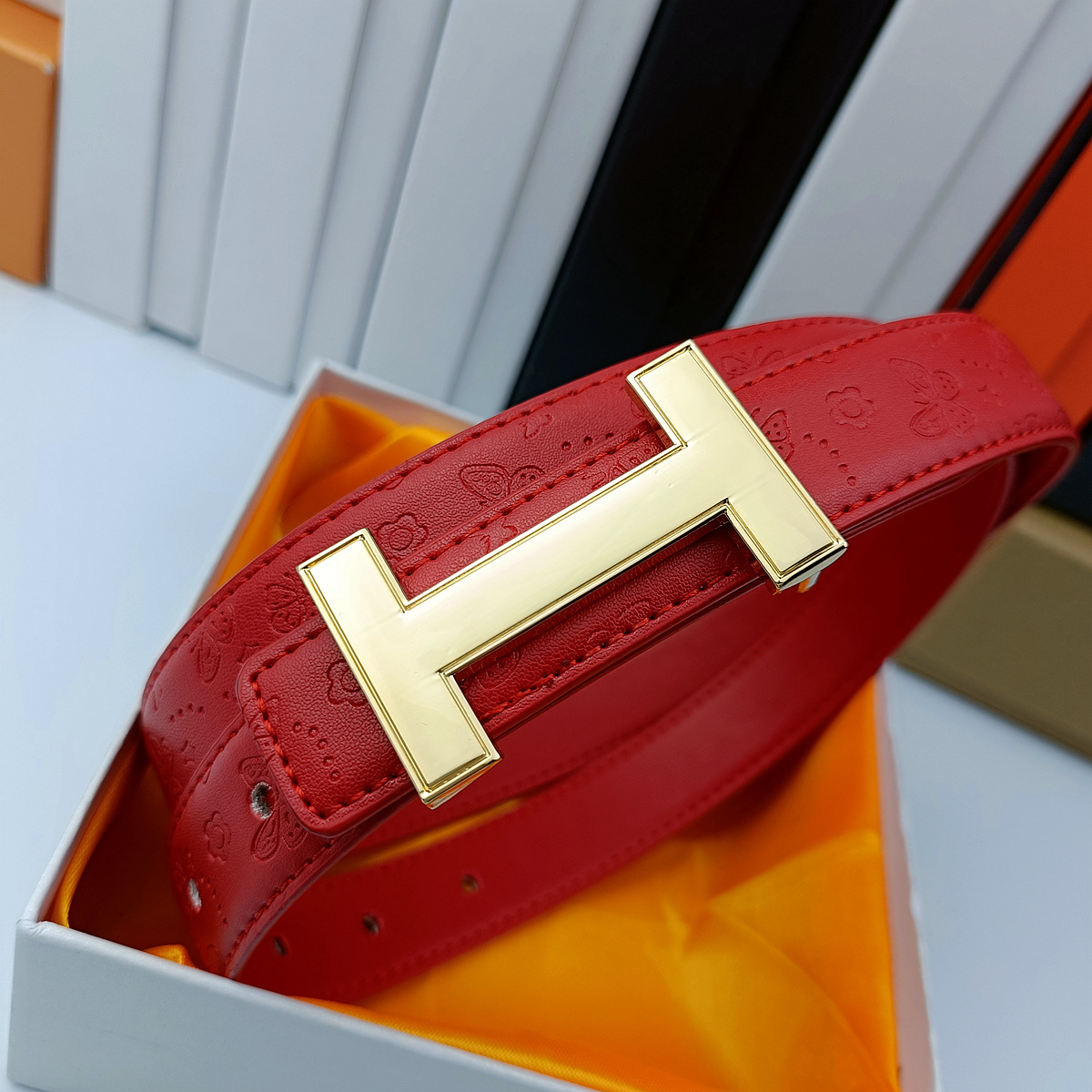 • 나비 레드 H 골드 버클