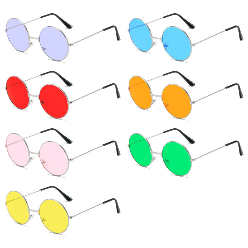 공장 도매 복고풍 라운드 선글라스 다채로운 트렌디 한 라운드 프레임 안경 컬러 렌즈 왕자 거울 도매스토어 가기