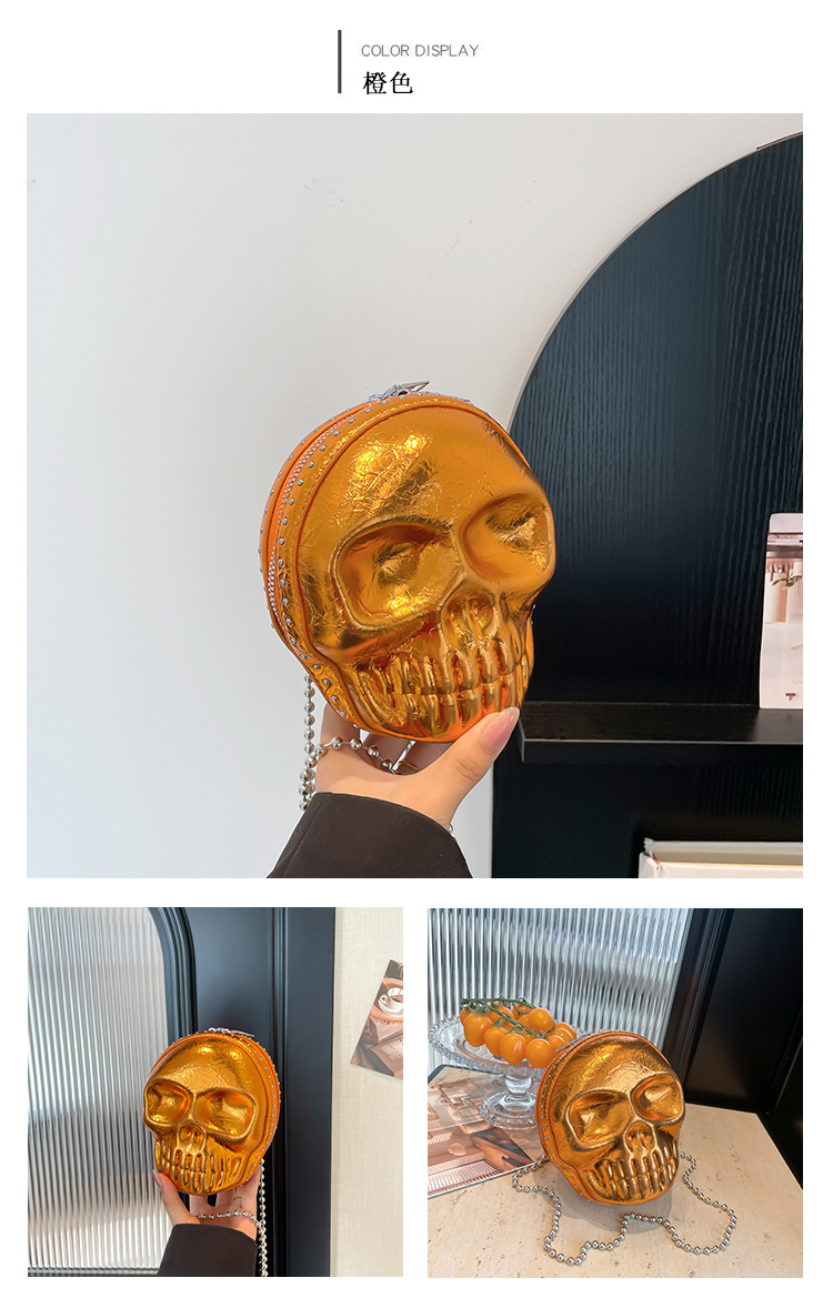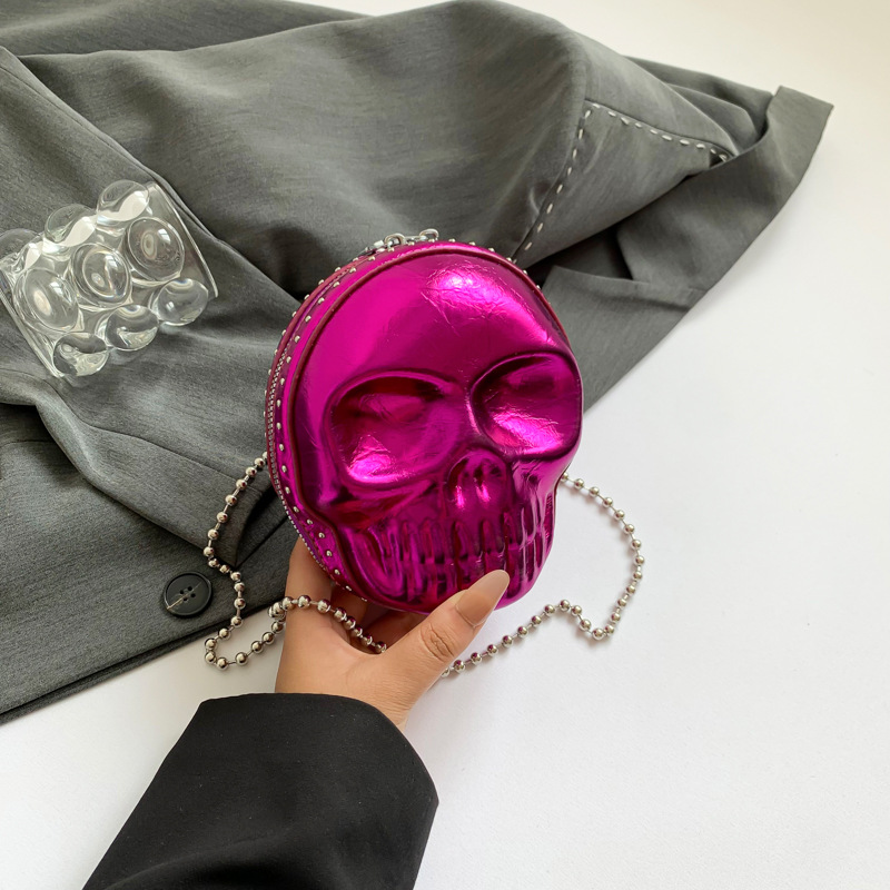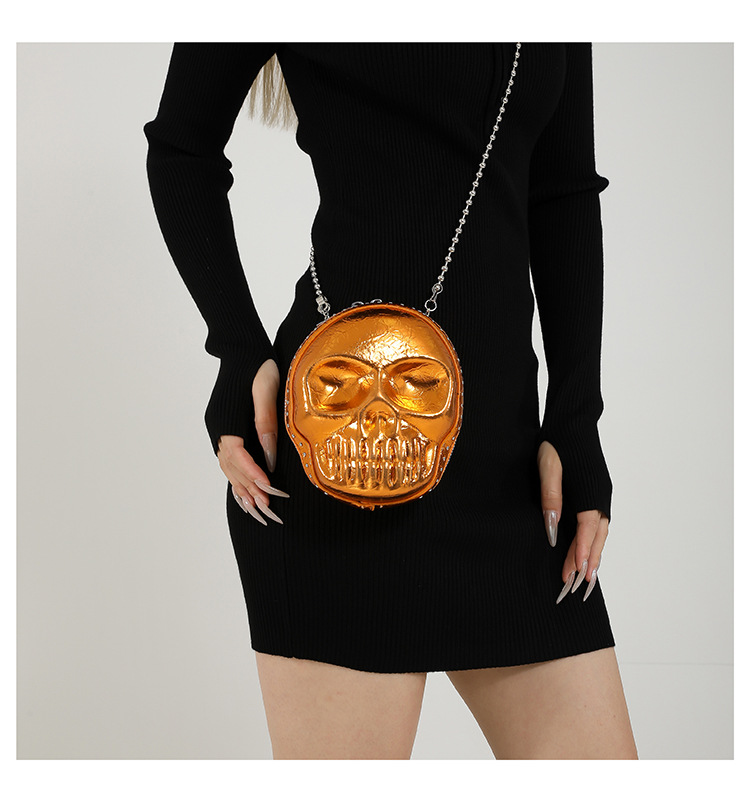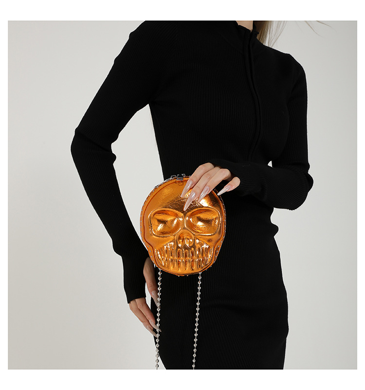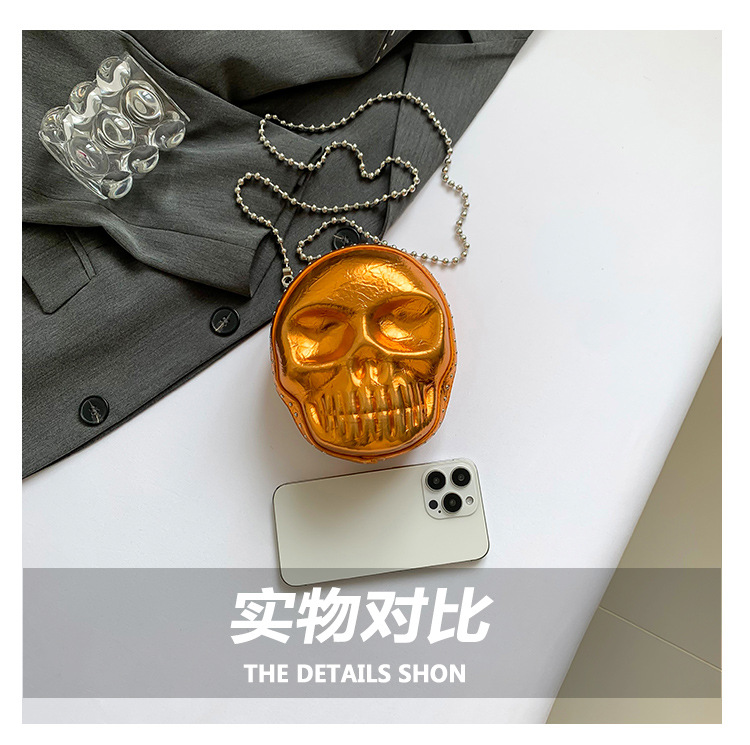 할로윈 두개골 가방 2024 새로운 개성 유행 어깨 가방 여성을위한 재미있는 틈새 미니 체인 크로스 바디 가방