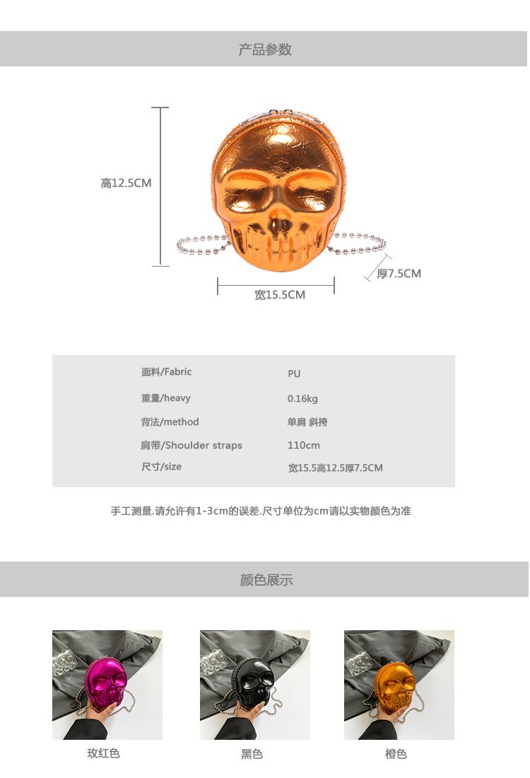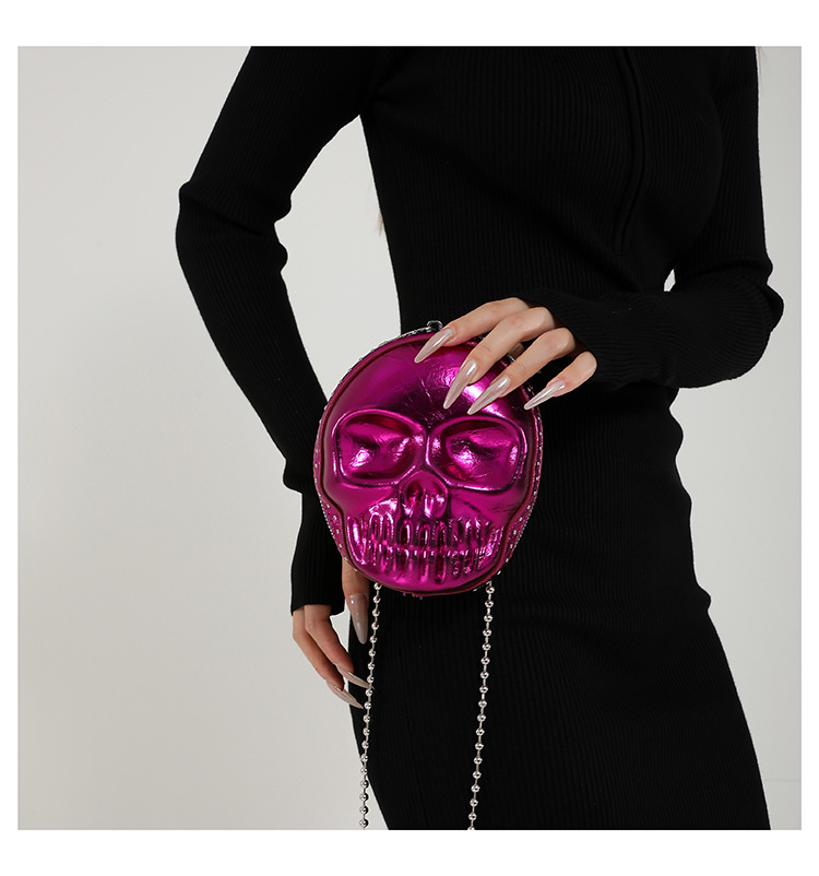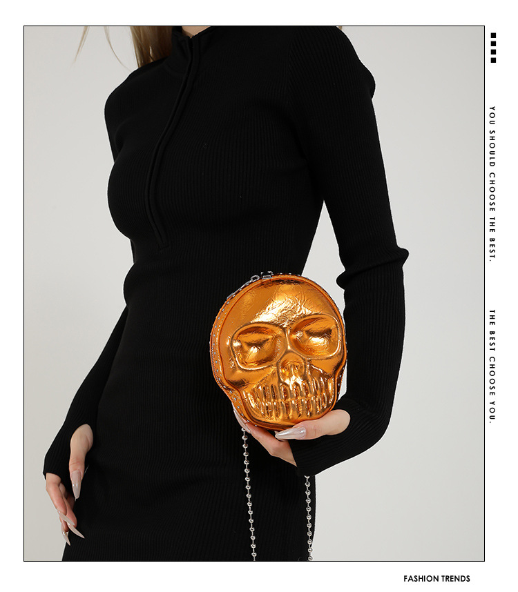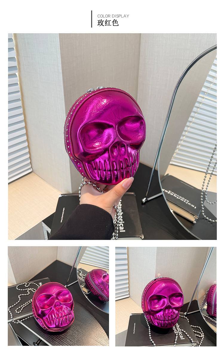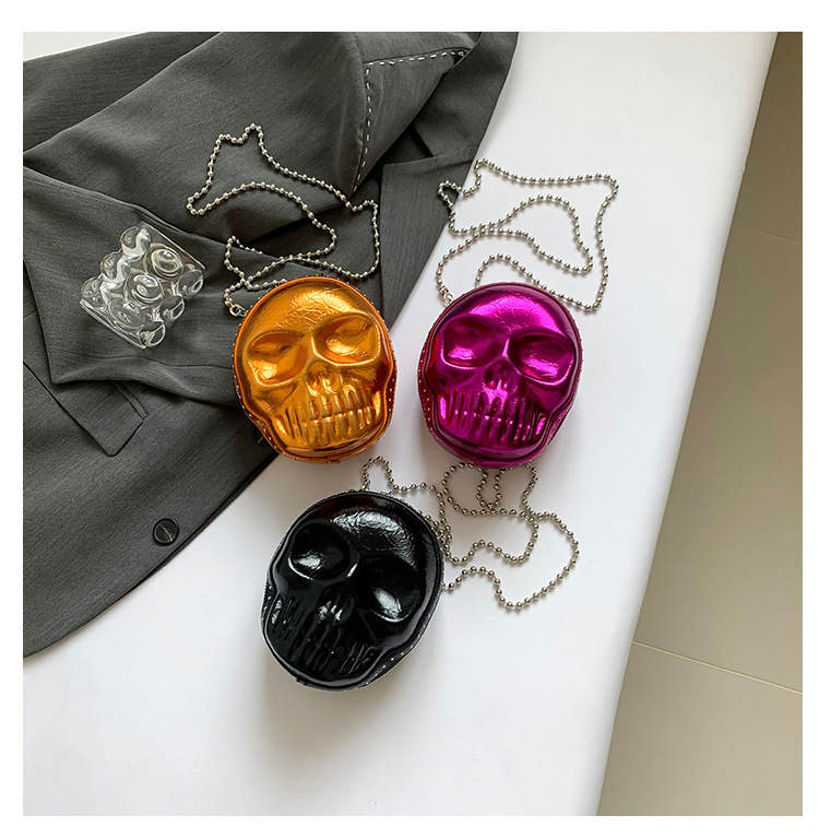 할로윈 두개골 가방 2024 새로운 개성 유행 어깨 가방 여성을위한 재미있는 틈새 미니 체인 크로스 바디 가방