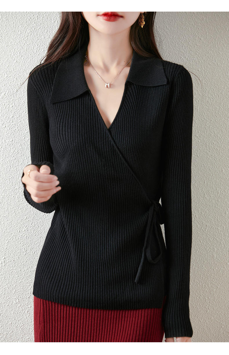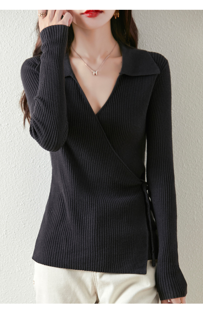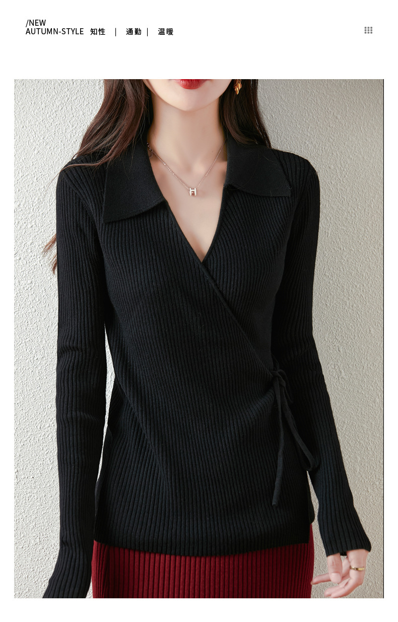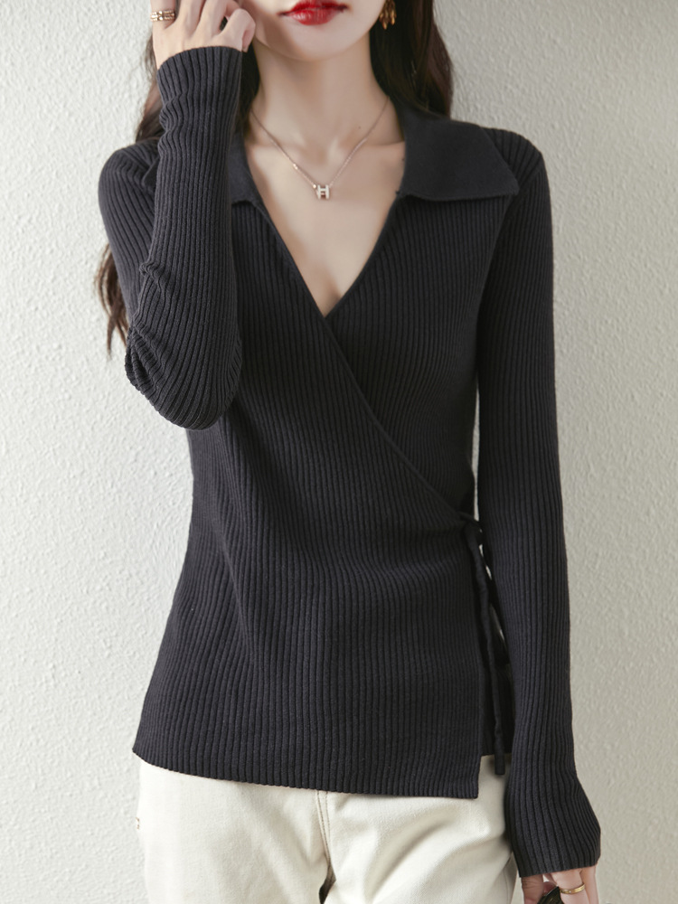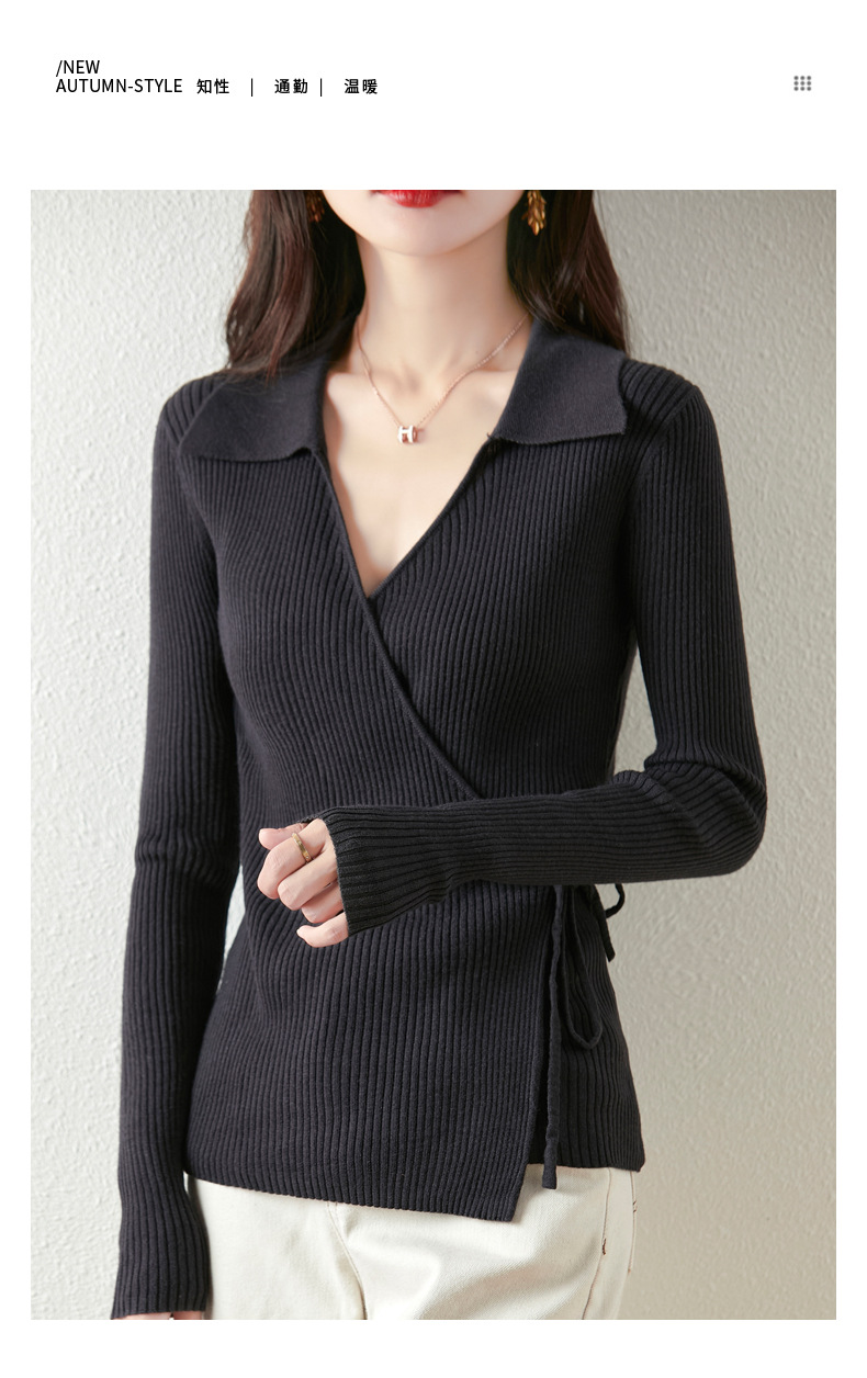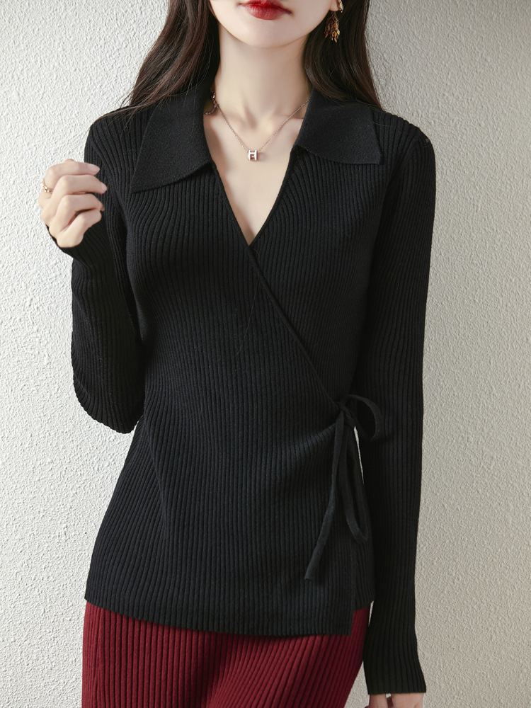 가을과 겨울 디자인 센스 틈새 스트랩 스웨터 니트 카디건 여성의 새로운 패션 통근 옷깃베이스 셔츠 탑