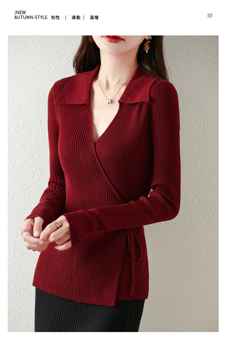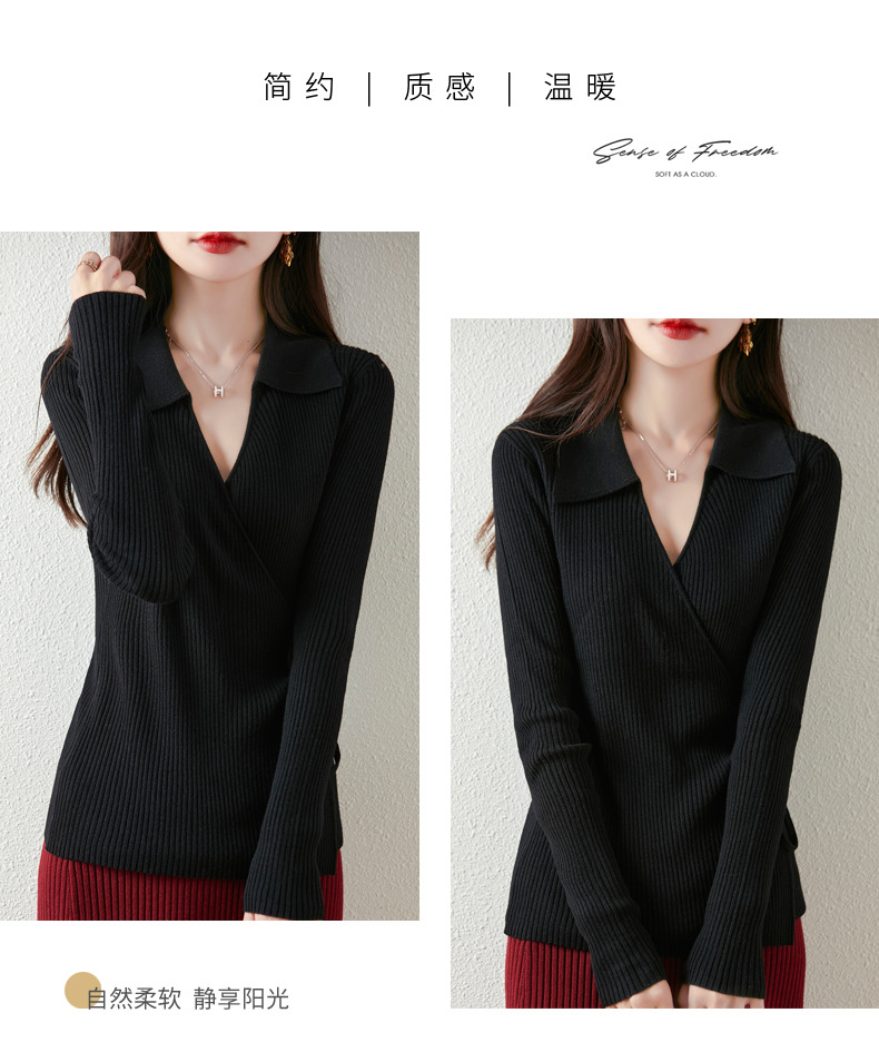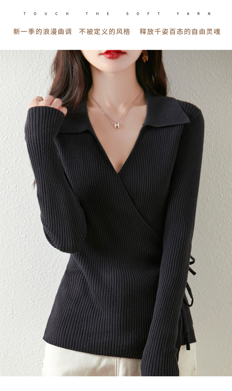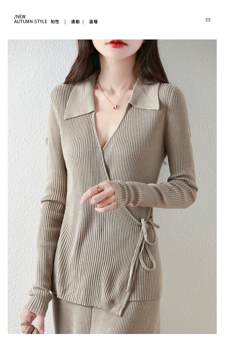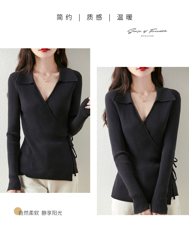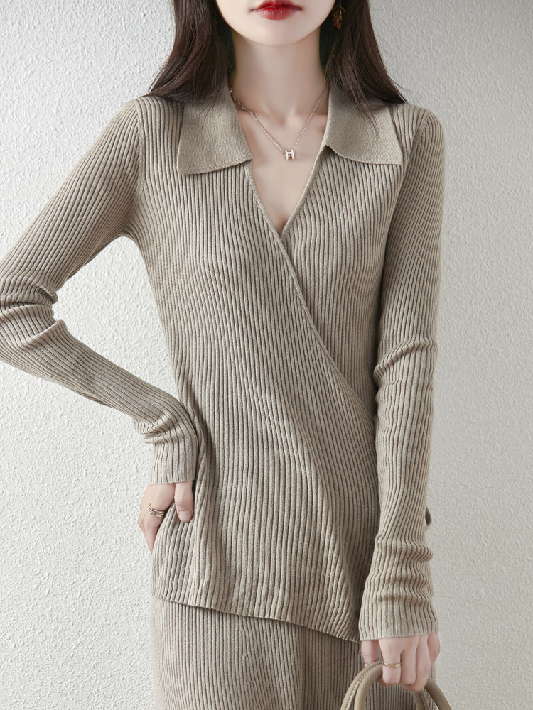 가을과 겨울 디자인 센스 틈새 스트랩 스웨터 니트 카디건 여성의 새로운 패션 통근 옷깃베이스 셔츠 탑