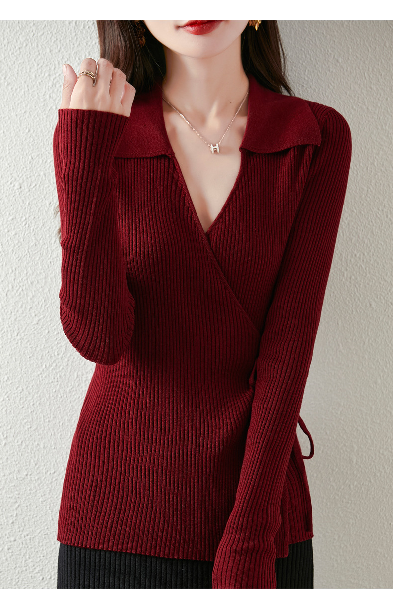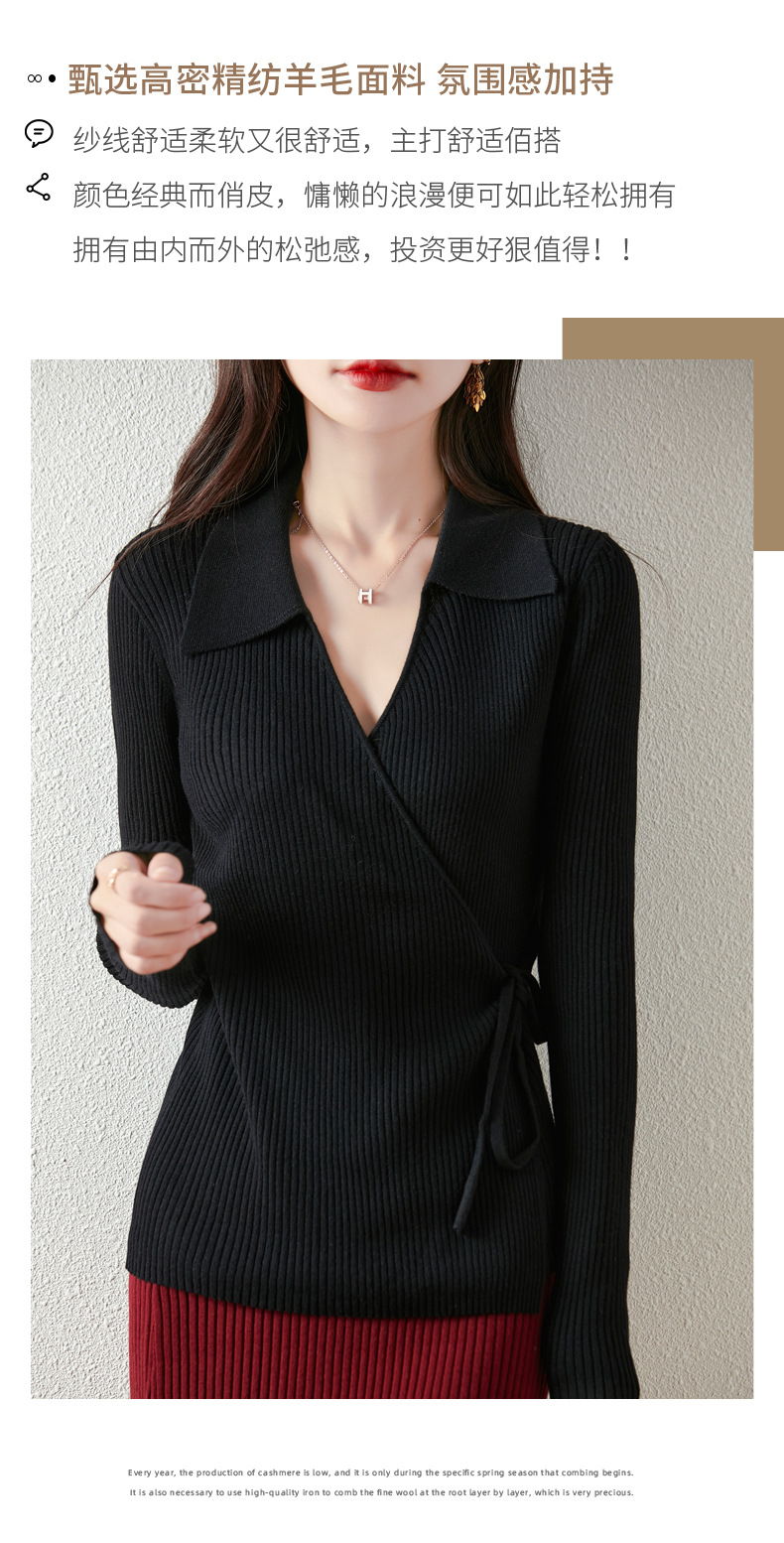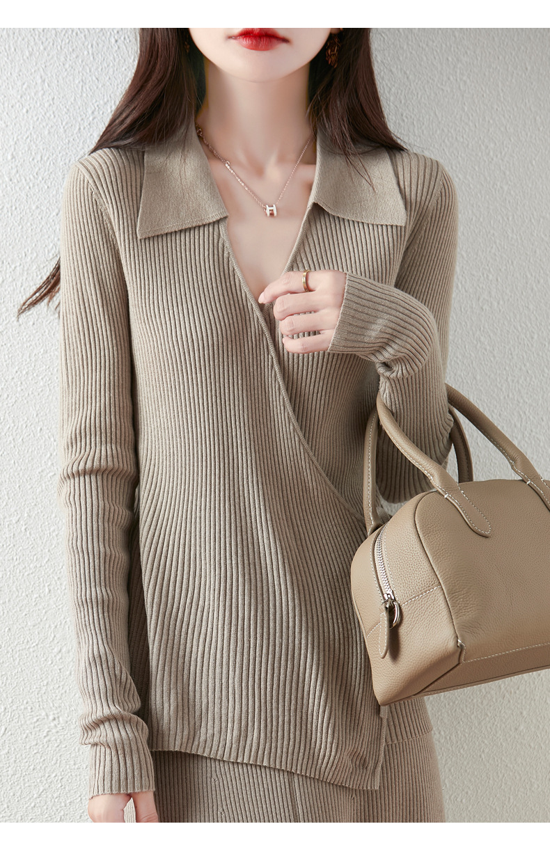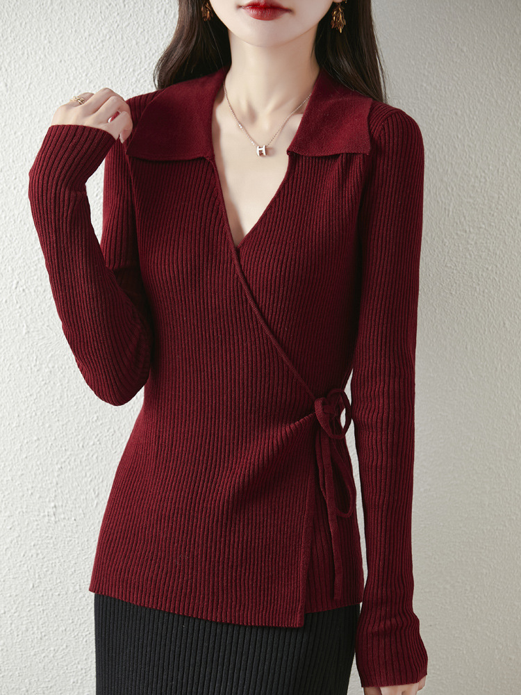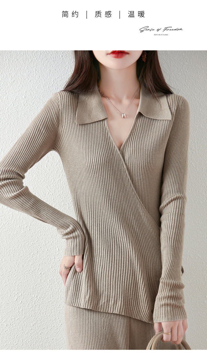 가을과 겨울 디자인 센스 틈새 스트랩 스웨터 니트 카디건 여성의 새로운 패션 통근 옷깃베이스 셔츠 탑