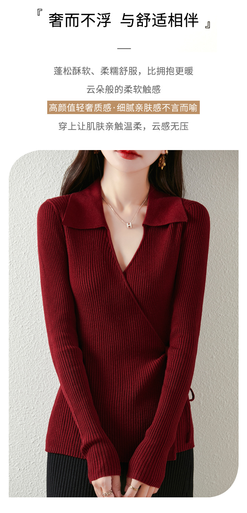 가을과 겨울 디자인 센스 틈새 스트랩 스웨터 니트 카디건 여성의 새로운 패션 통근 옷깃베이스 셔츠 탑스토어 가기