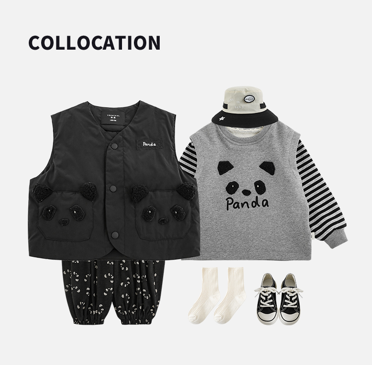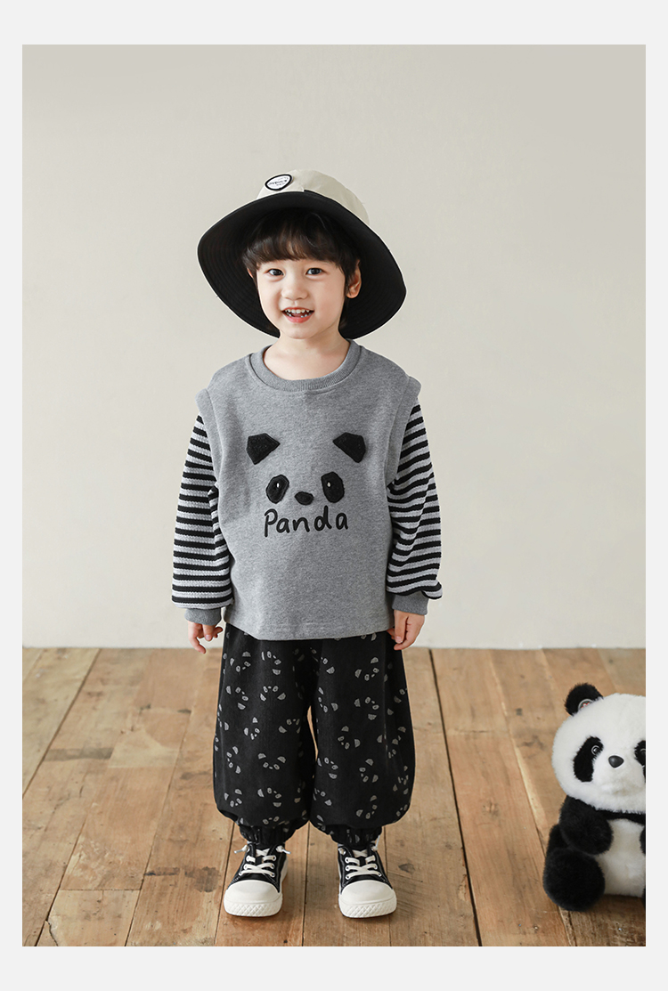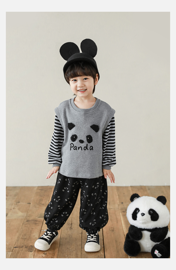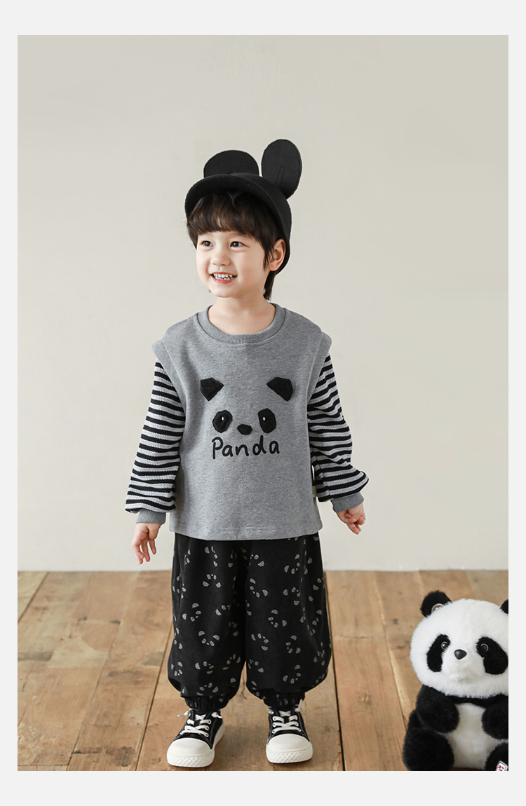 Wurib a boy 2024 새로운 긴 소매 가짜 두 줄무늬 팬더 스웨터 가을 캐주얼 블루머 세트스토어 가기