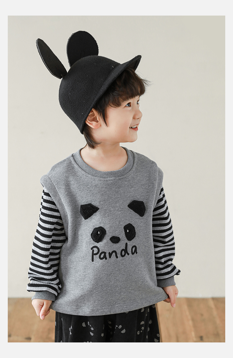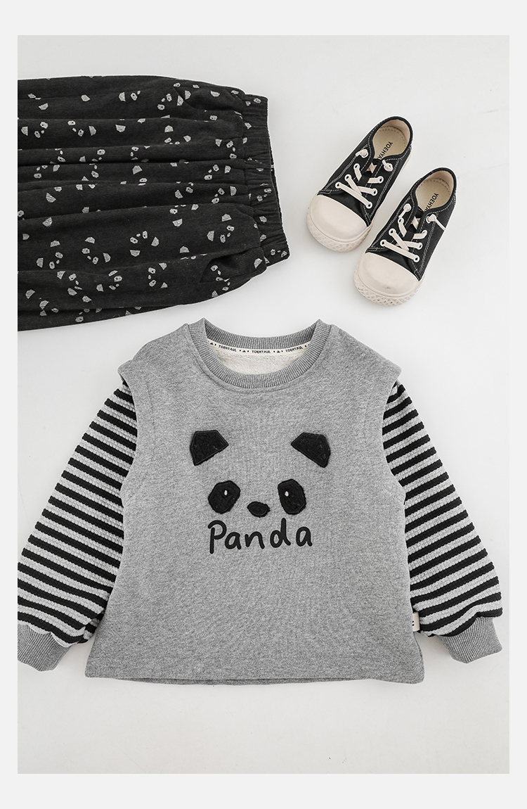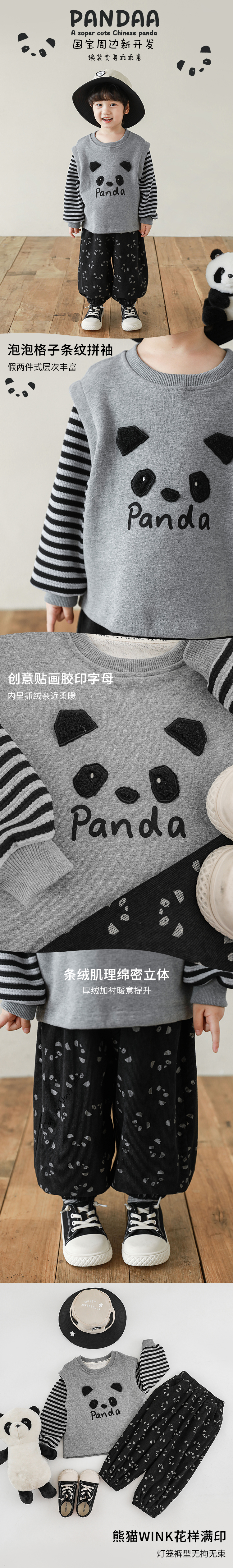 Wurib a boy 2024 새로운 긴 소매 가짜 두 줄무늬 팬더 스웨터 가을 캐주얼 블루머 세트