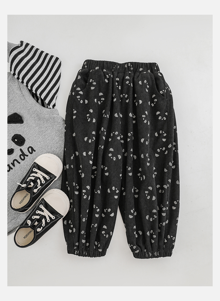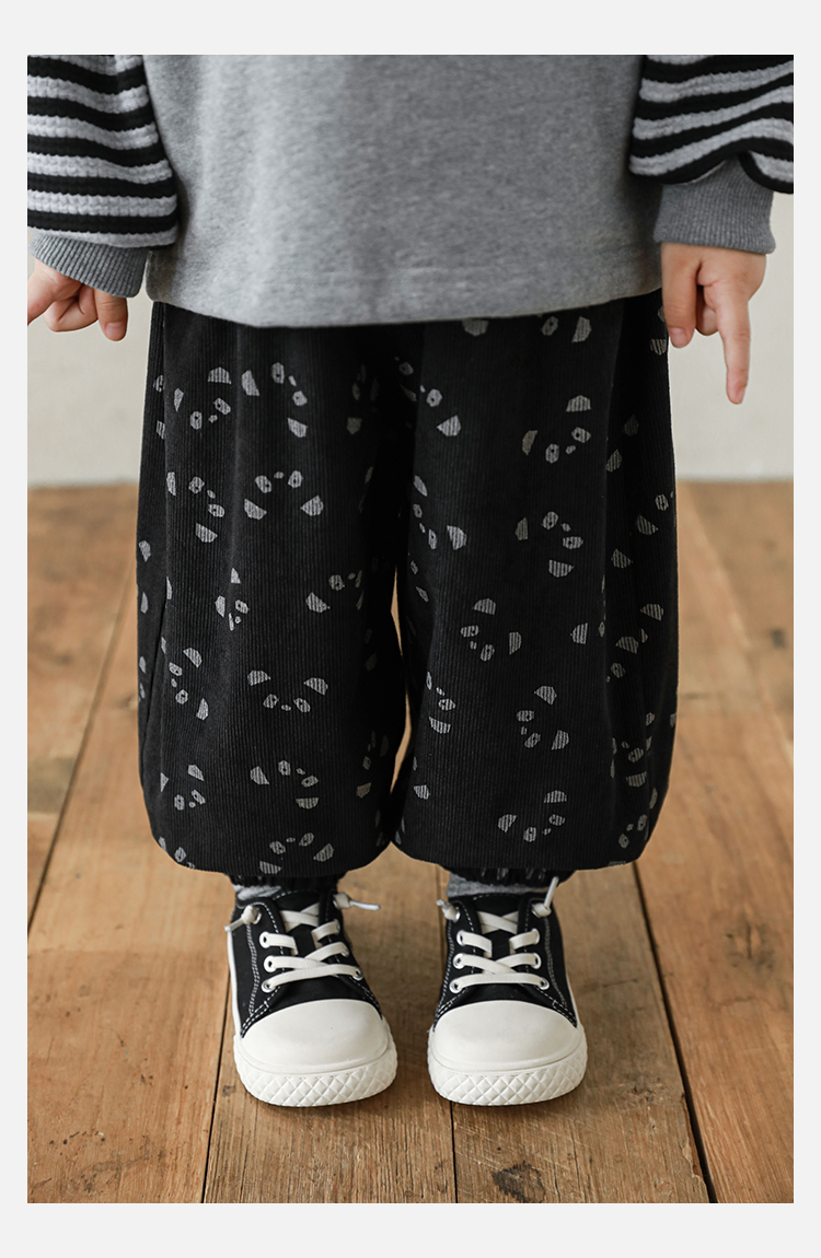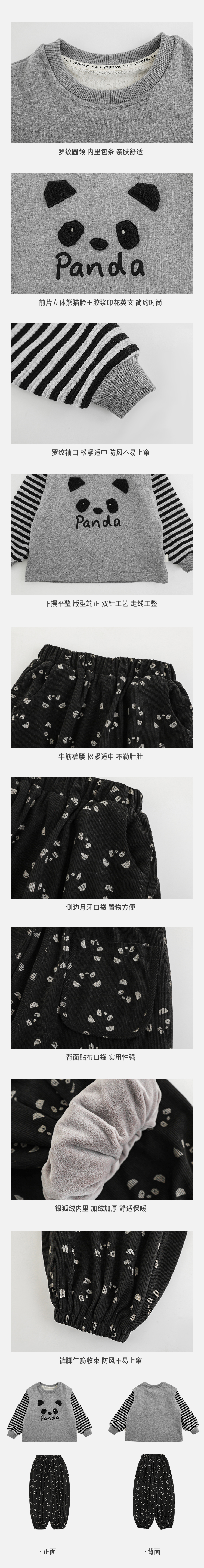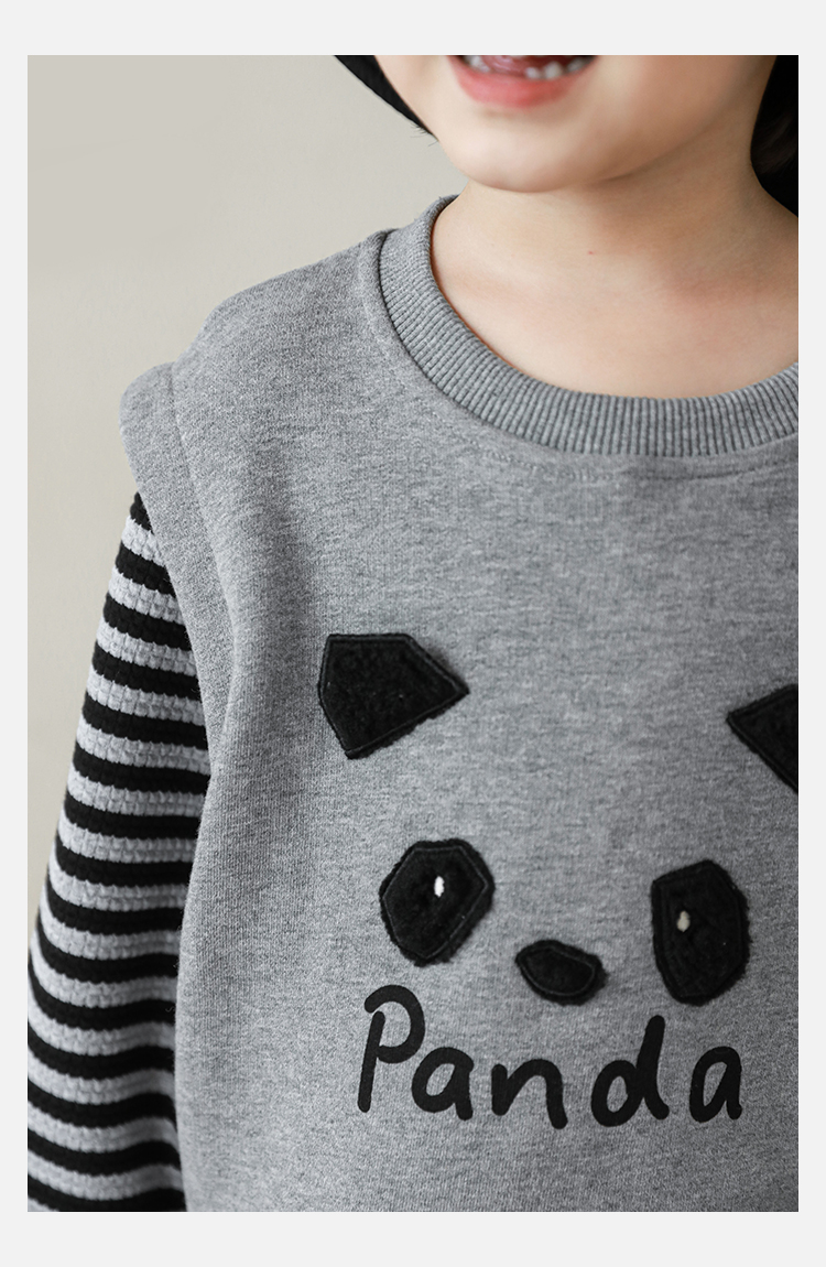 Wurib a boy 2024 새로운 긴 소매 가짜 두 줄무늬 팬더 스웨터 가을 캐주얼 블루머 세트