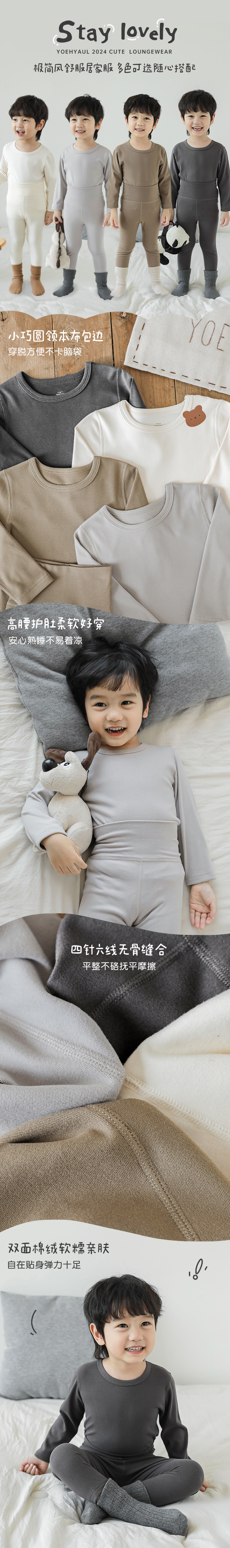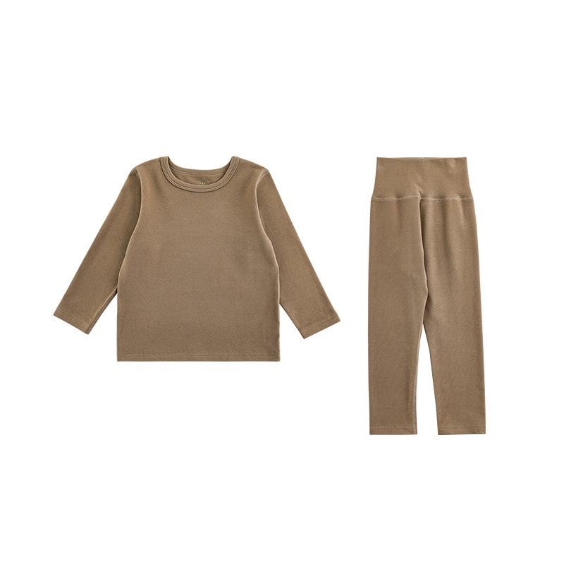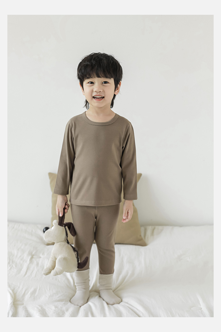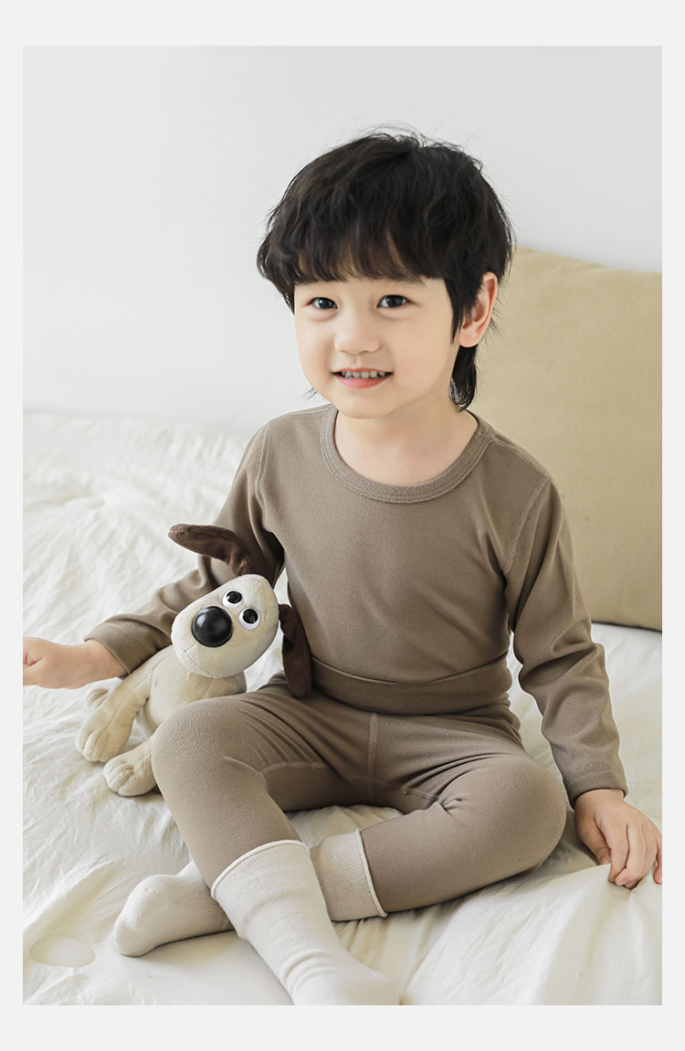 Wuri Bos Boys 가을 새로운 긴 소매 크루 넥 간단한 홈 의류 세트 2024 어린이 잠옷 투피스 세트