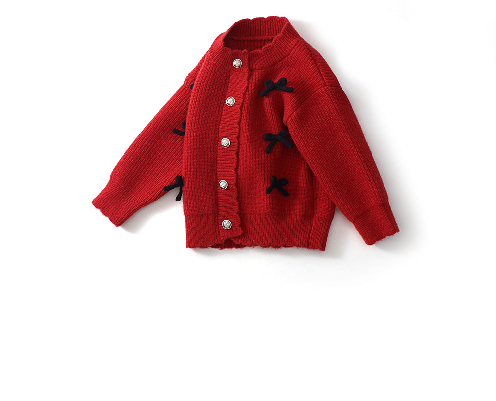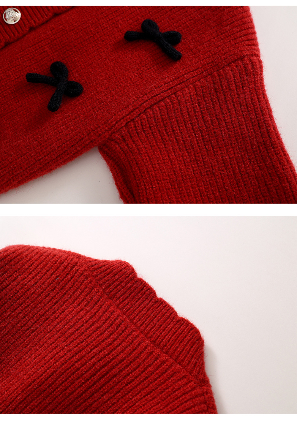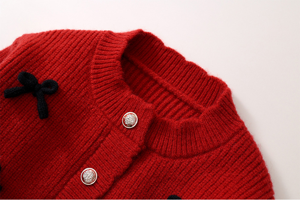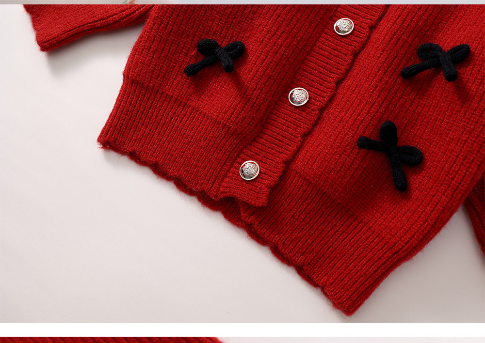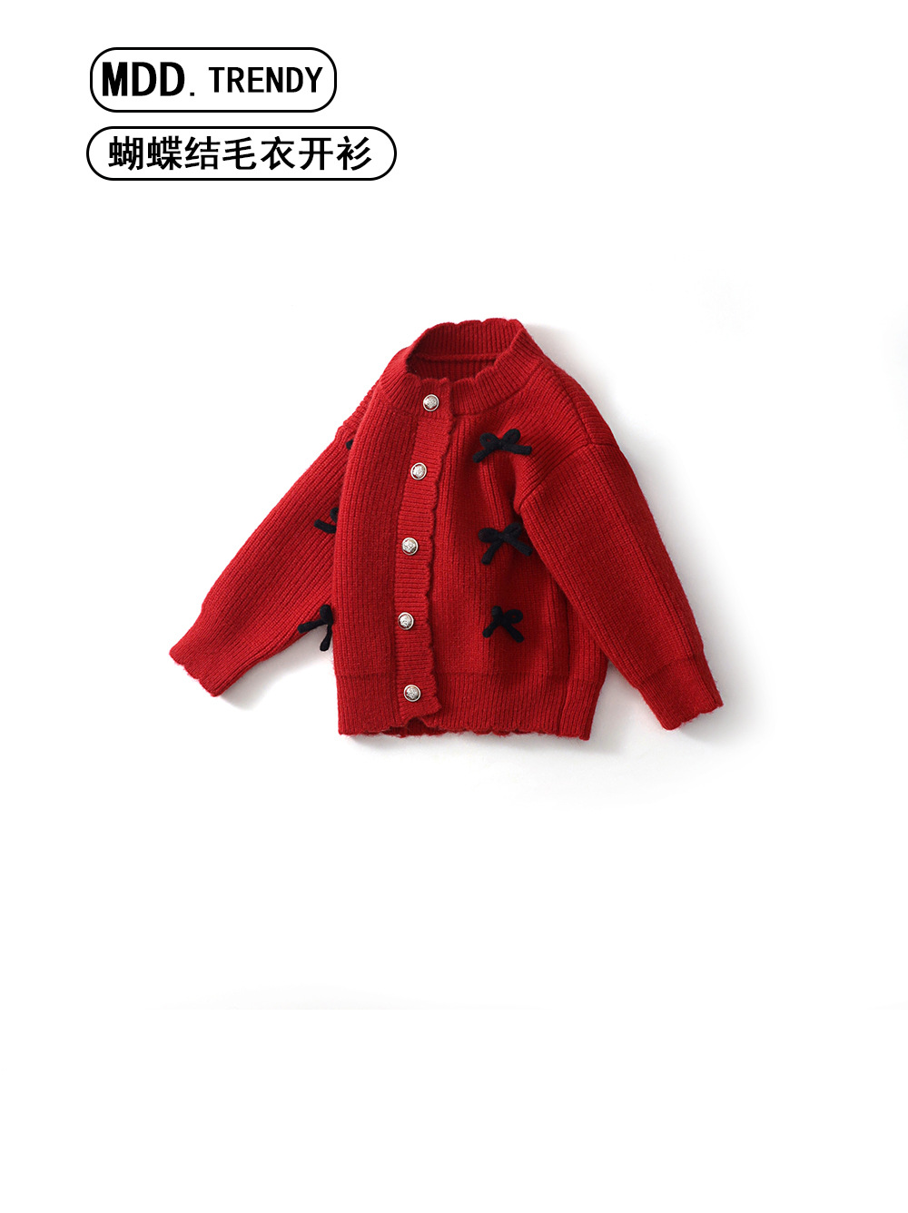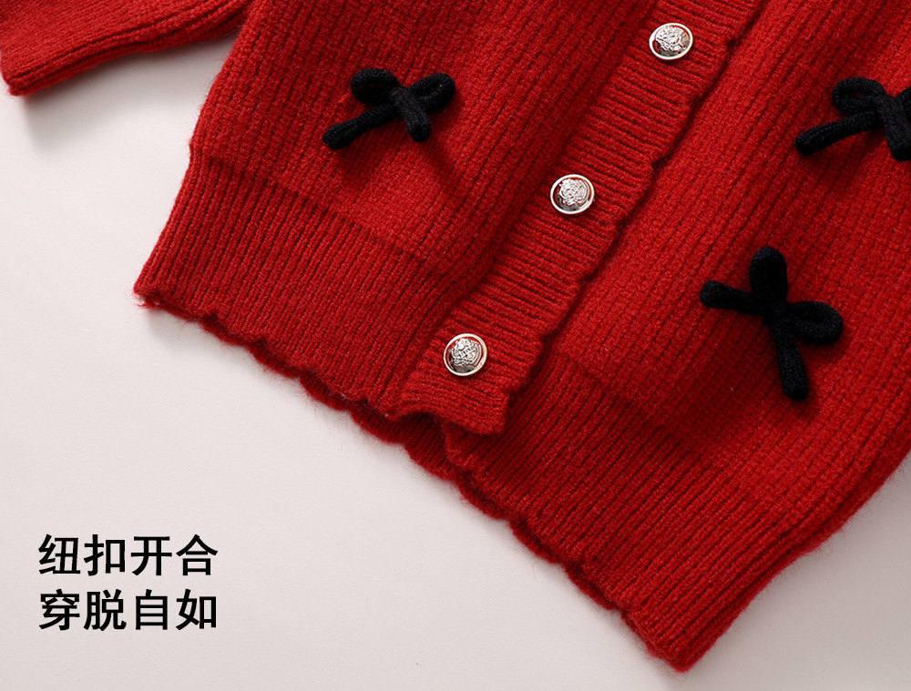 MDD 가을과 겨울 어린이 의류 새로운 소녀 빨간 스웨터 니트 활 스웨터 아기 소녀 푹신한 스커트 투투