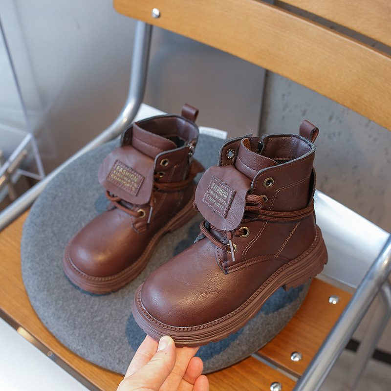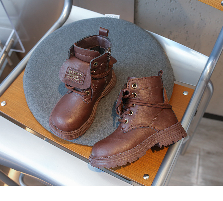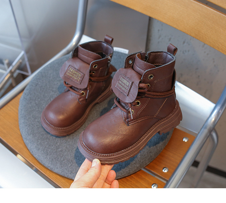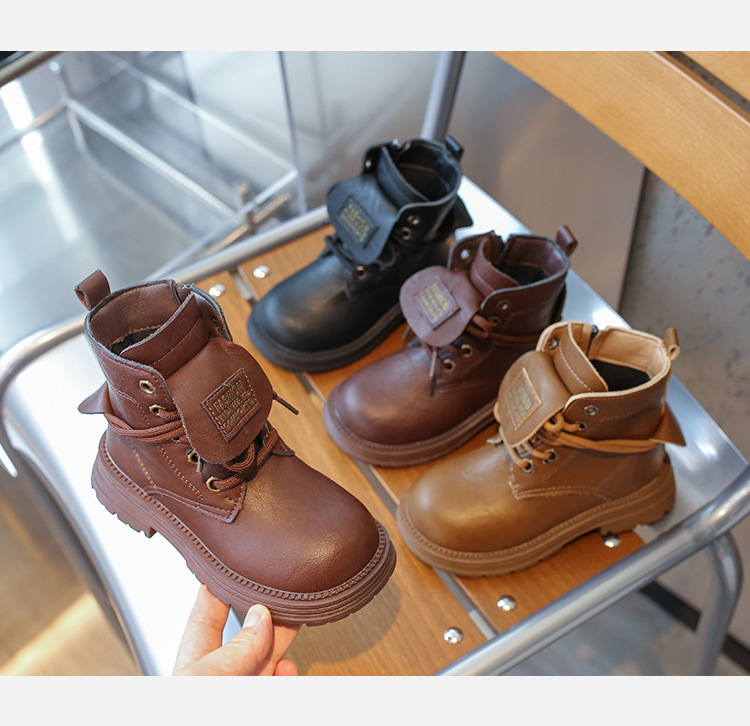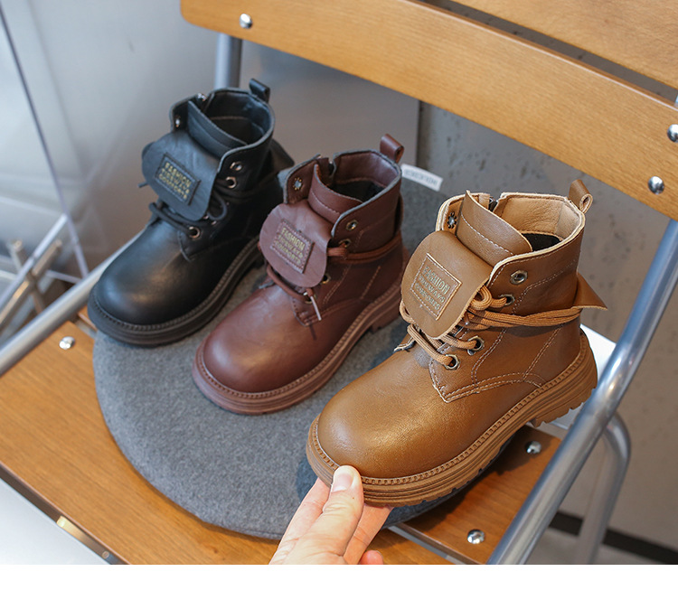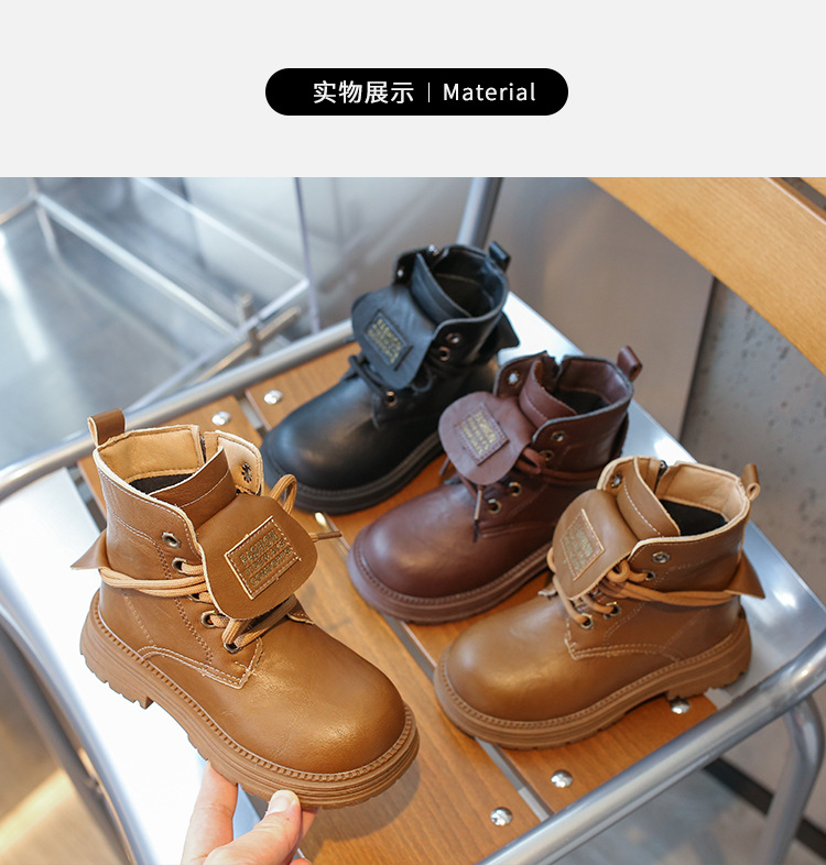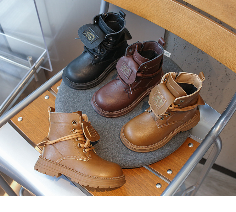 어린이 쇼트 부츠 2024 가을 겨울 올 매치 걸스 패션 올 매치 영국 스타일 가죽 부츠 보이즈 레트로 미끄럼 방지 마틴 부츠