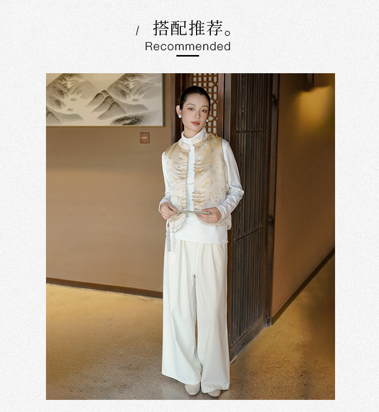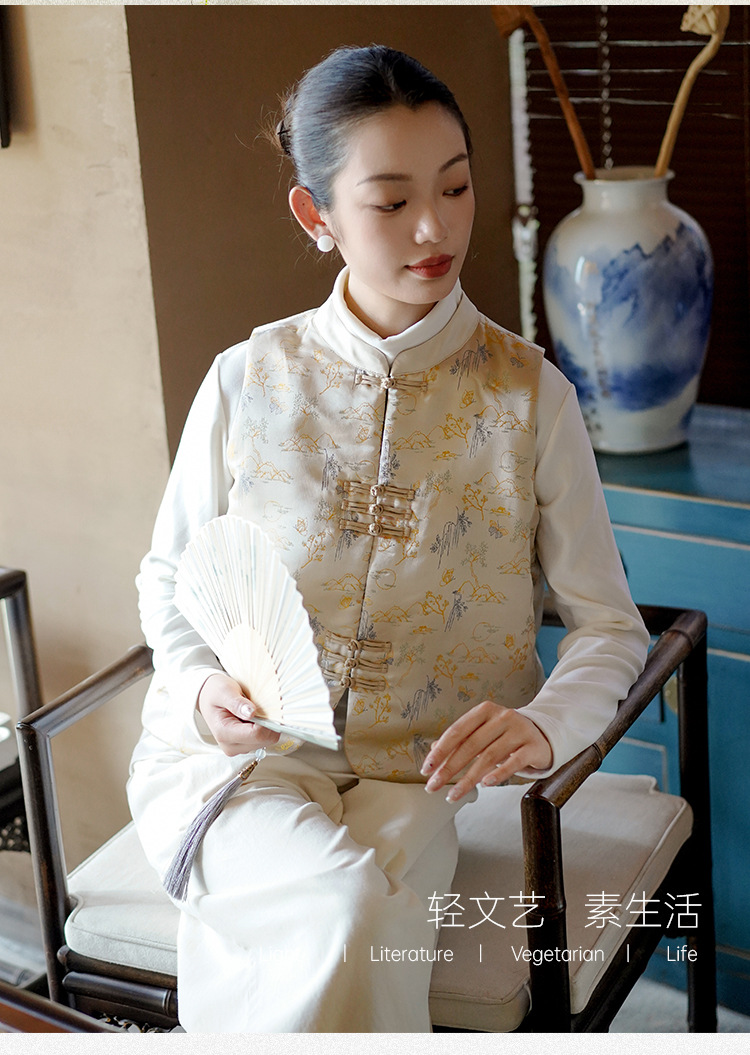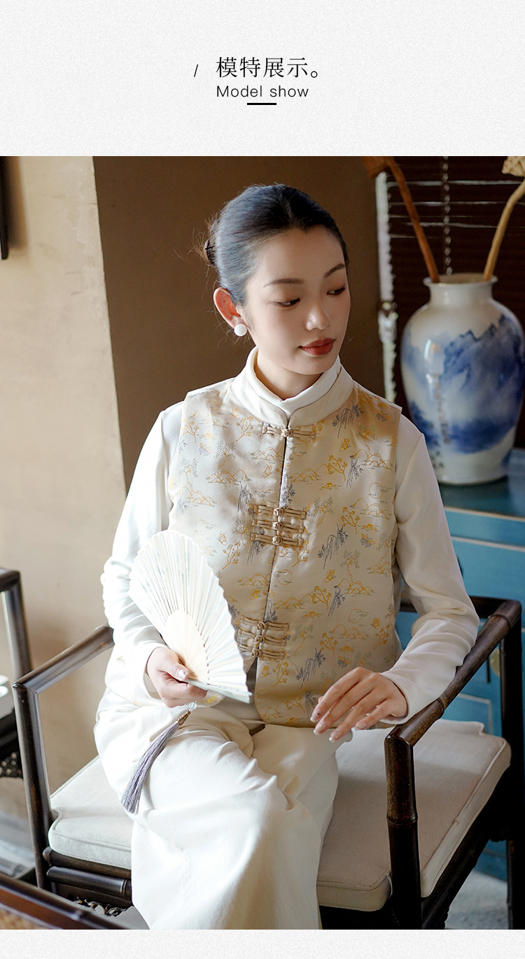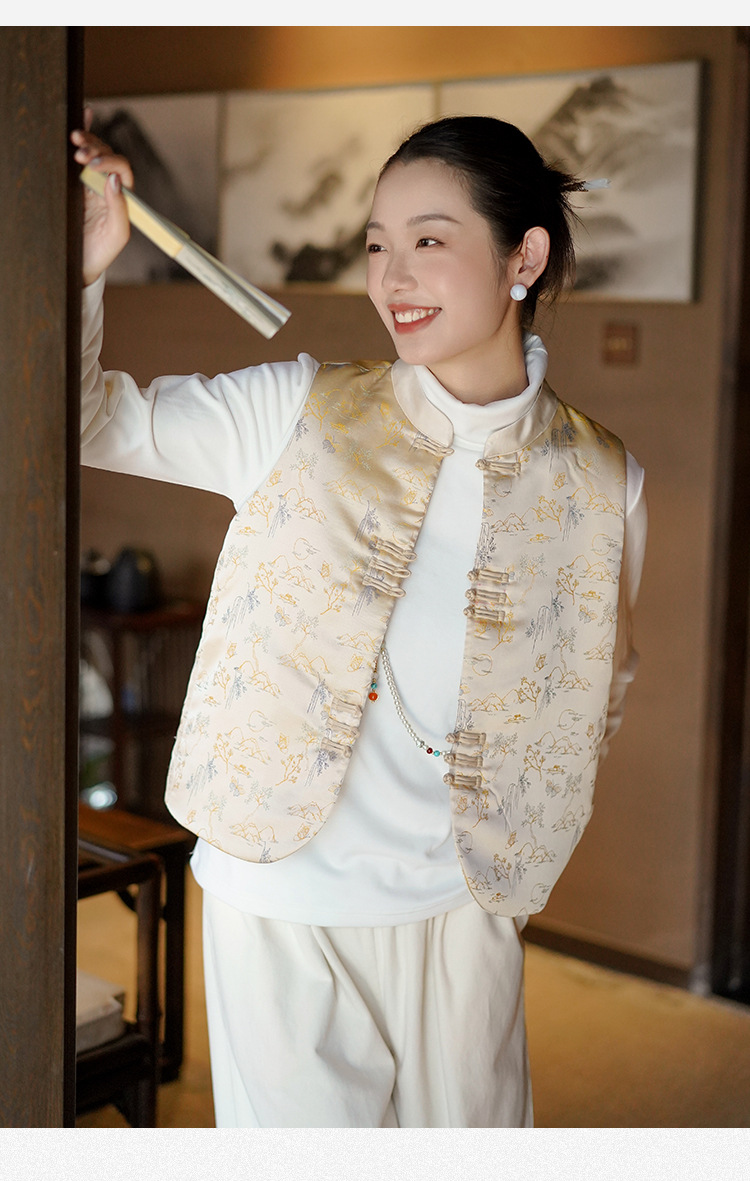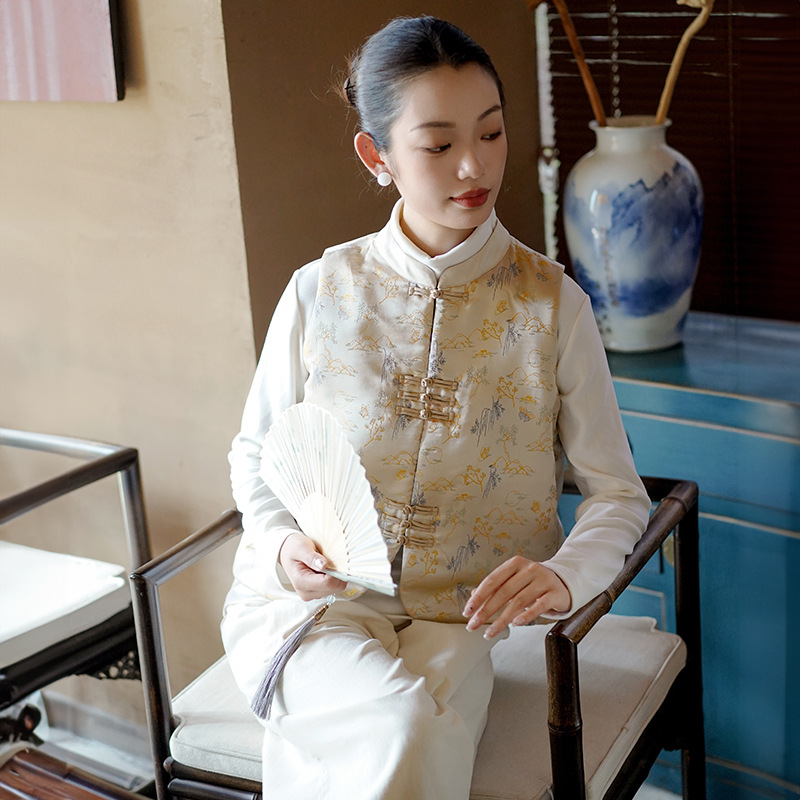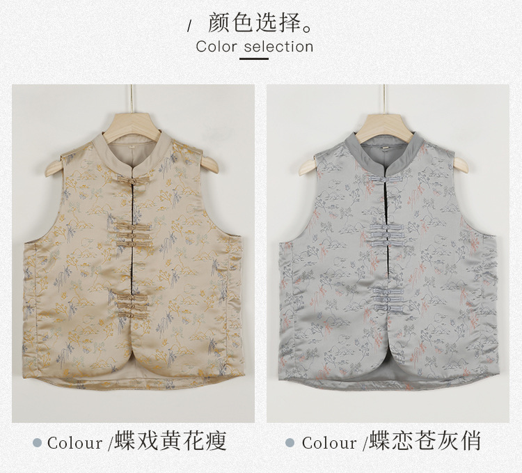 여자 가을 · 겨울 새 모조 송 진 새 중국면 조끼 여성 하이 엔드 새틴 복고풍 조끼 국민스타일 웨이스트코트