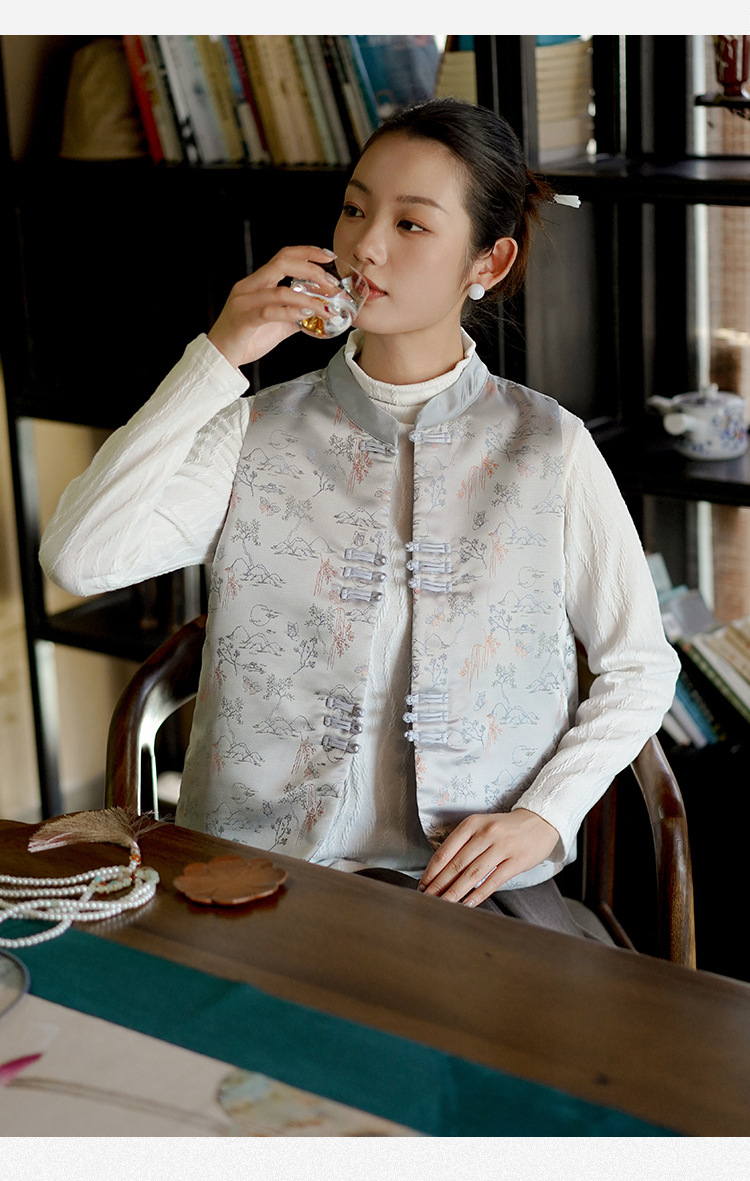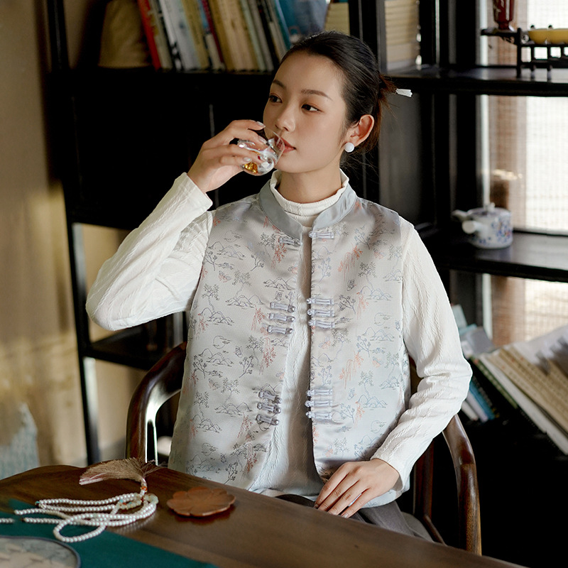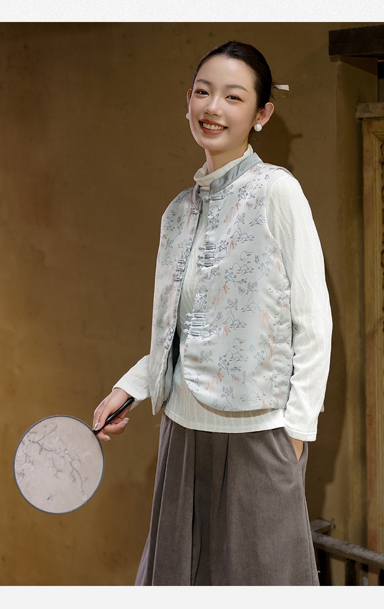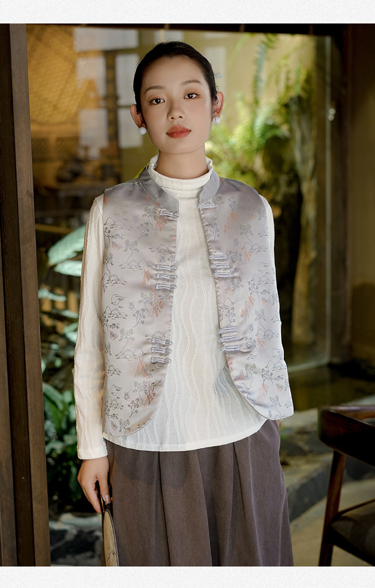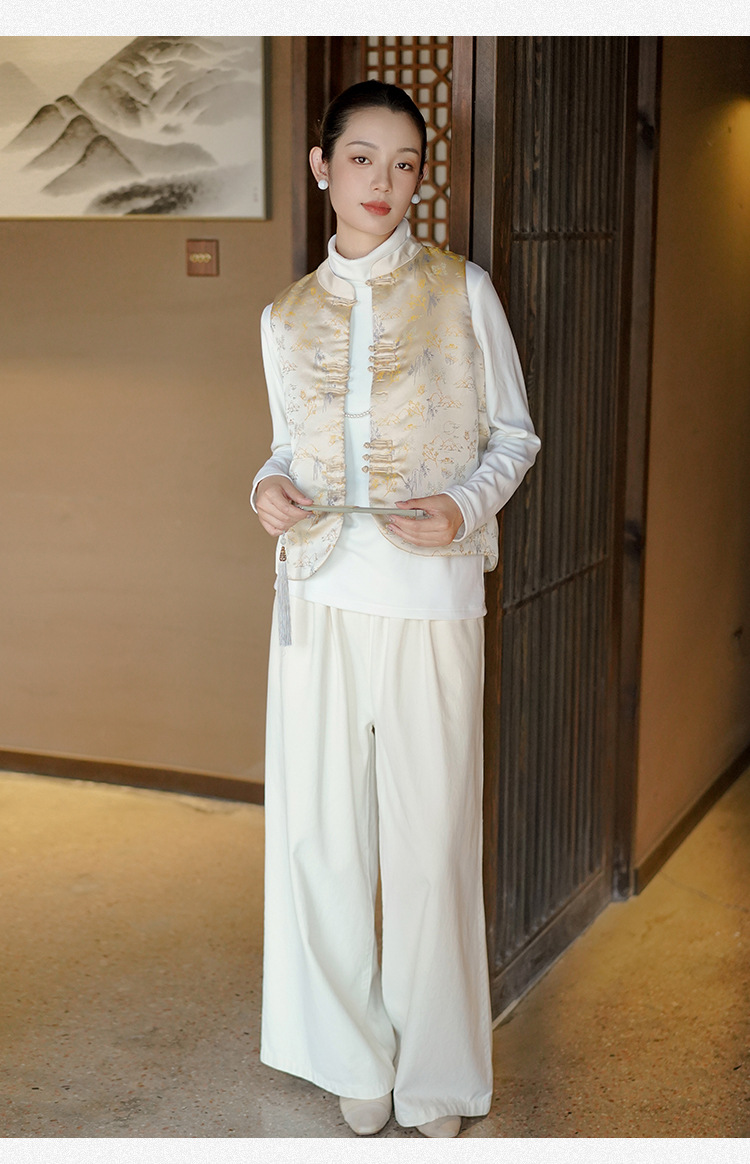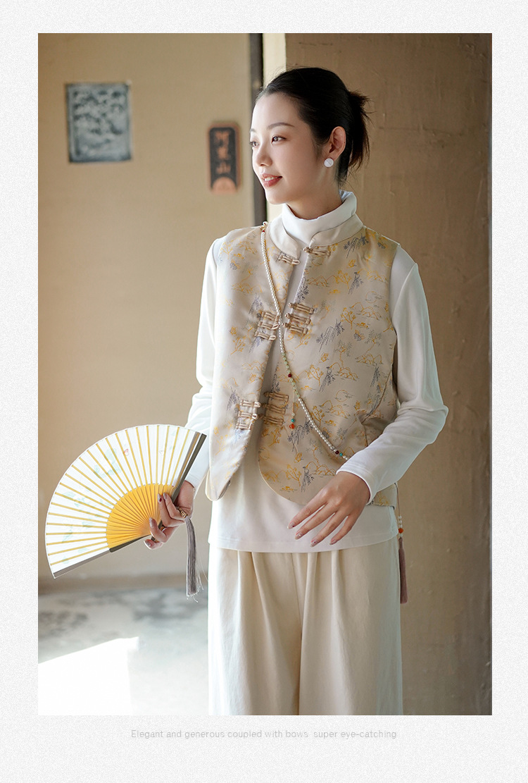 여자 가을 · 겨울 새 모조 송 진 새 중국면 조끼 여성 하이 엔드 새틴 복고풍 조끼 국민스타일 웨이스트코트