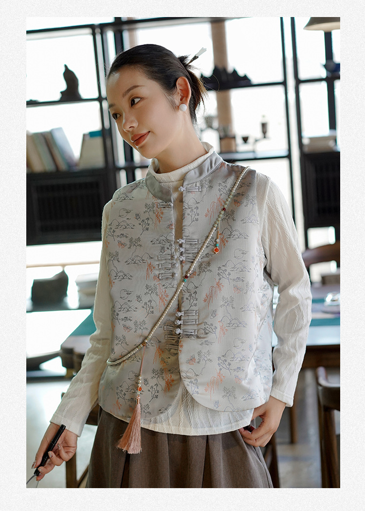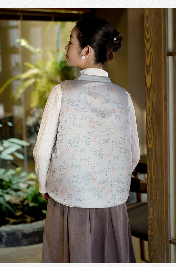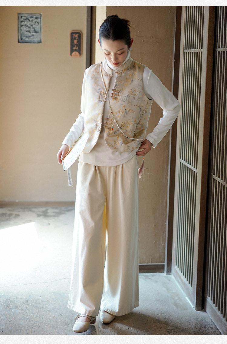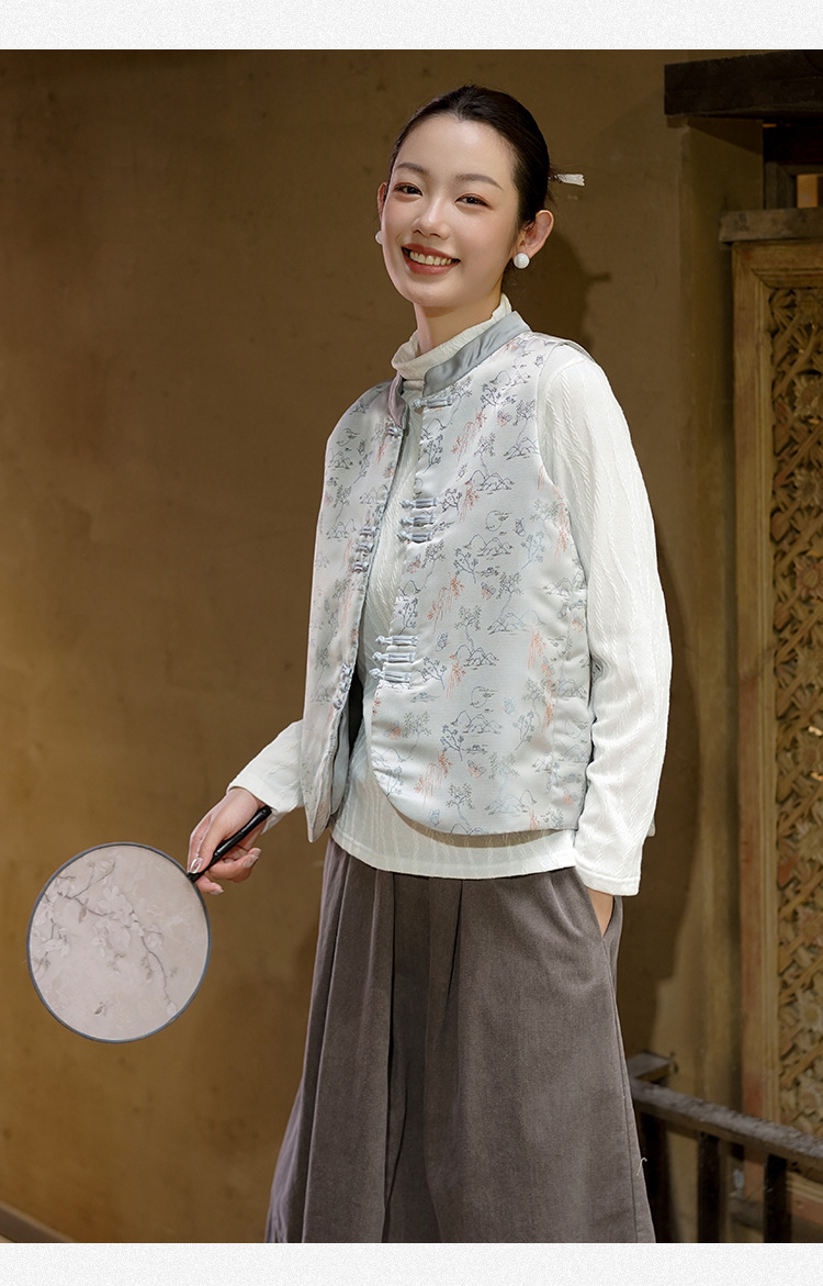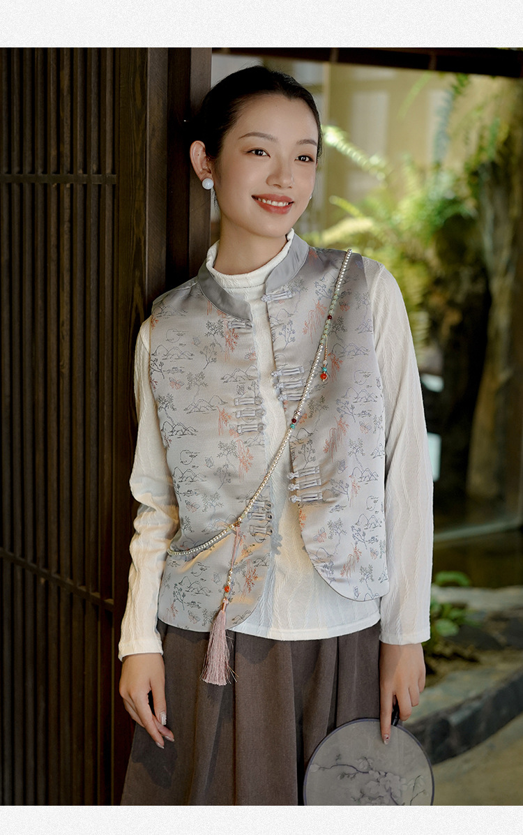여자 가을 · 겨울 새 모조 송 진 새 중국면 조끼 여성 하이 엔드 새틴 복고풍 조끼 국민스타일 웨이스트코트