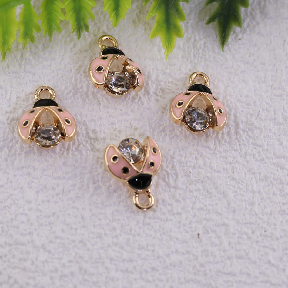 귀여운 다이아몬드로 장식 된 Coccinella septempunctata 3 차원 합금 펜던트 DIY 수제 팔찌 목걸이 쥬얼리 소재 액세서리