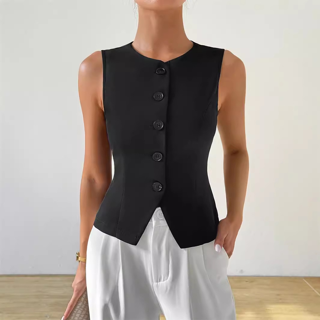 라운드 넥 민소매 여성 조끼 2024 가을 유럽과 미국 국경 패션 레저 새로운 재킷 제조 업체 도매스토어 가기