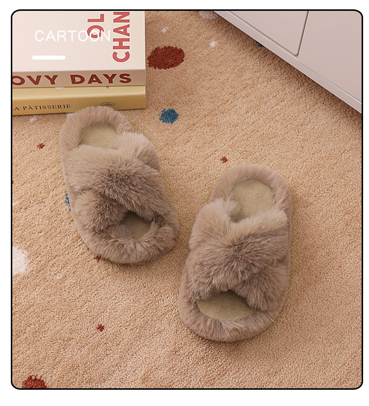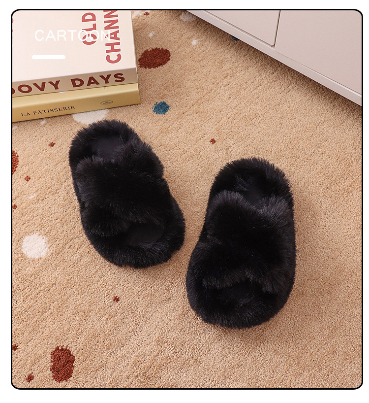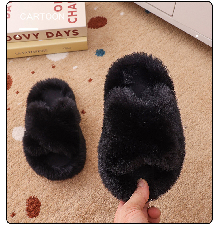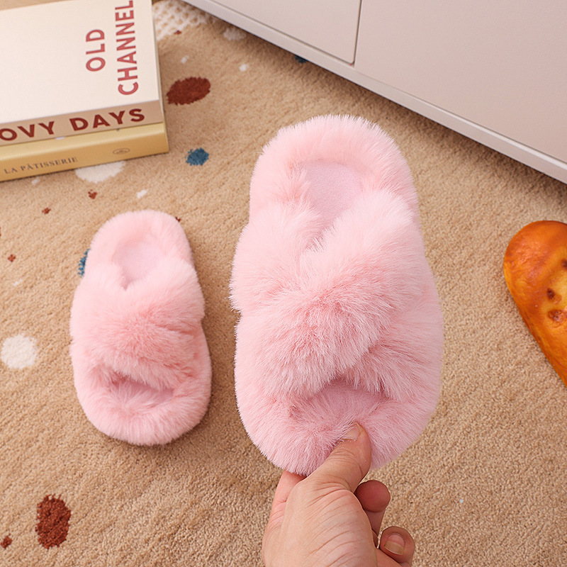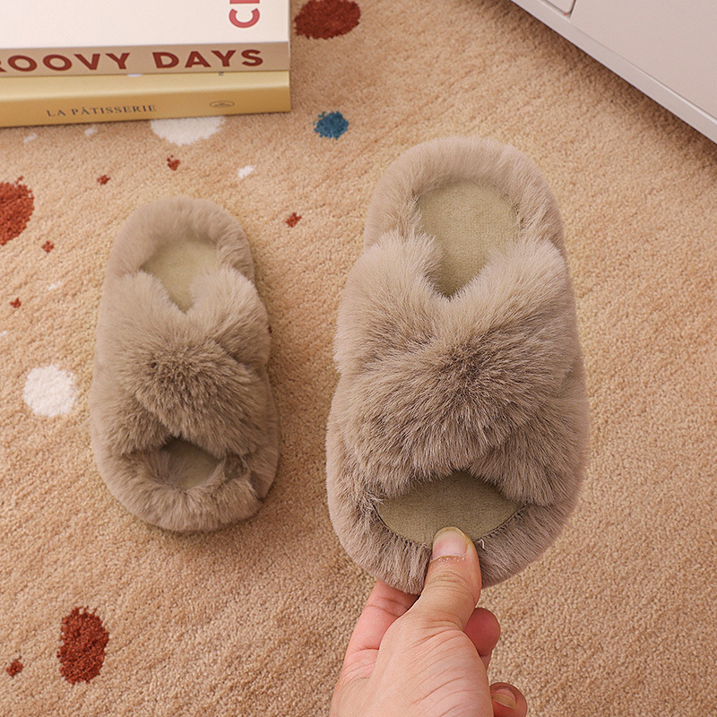 부모-자식 크로스 울 슬리퍼 2024 엄마와 딸 새로운 가을과 겨울 집 따뜻한 기모 두꺼운 미끄럼 방지 아기 면화 슬리퍼