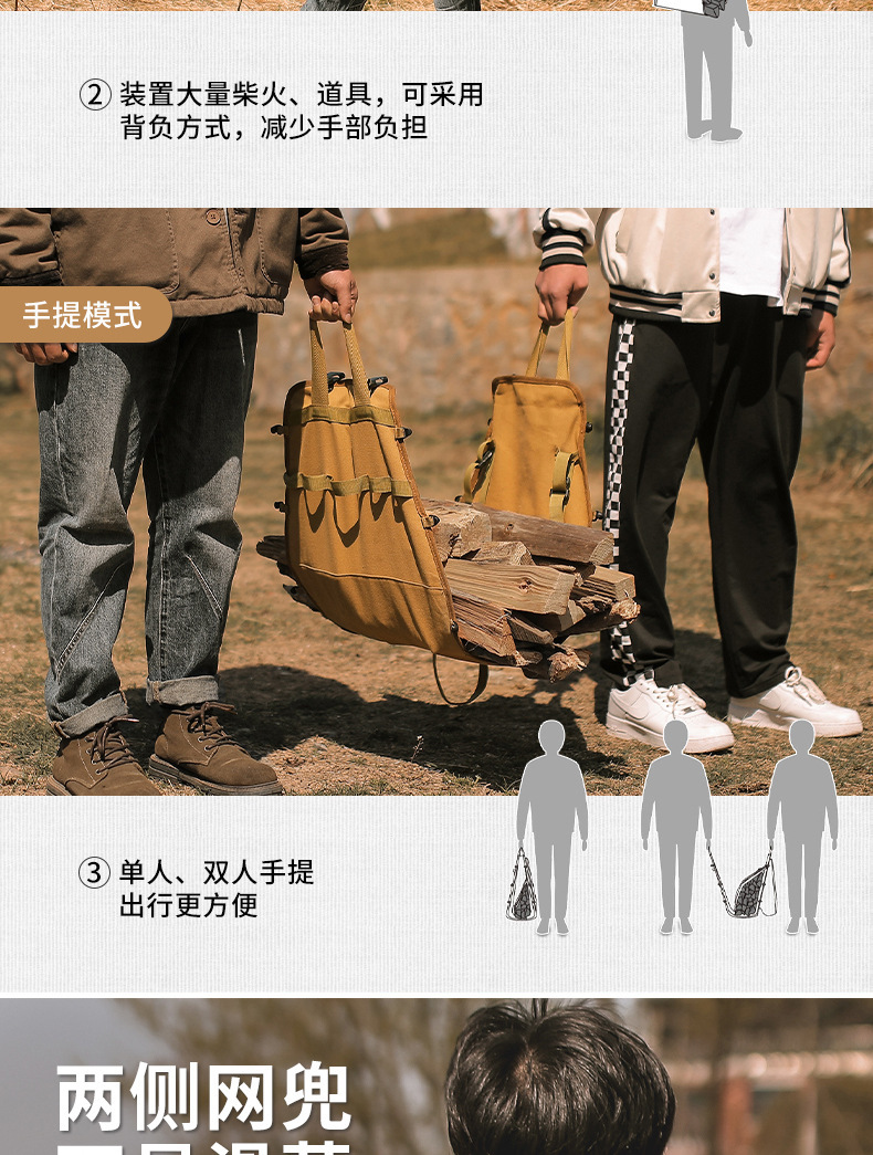 야외 장작 가방 저장 가방 다기능 휴대용 기타 가방 캠핑 장작 저장 가방 배낭 캔버스 배낭