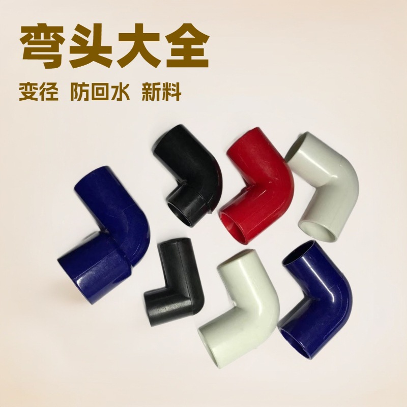 弯头系列齐全,如:弯头、带孔弯头、变径弯头(两端内径不同)内外弯头(一端内径与另一端外径相同)等。