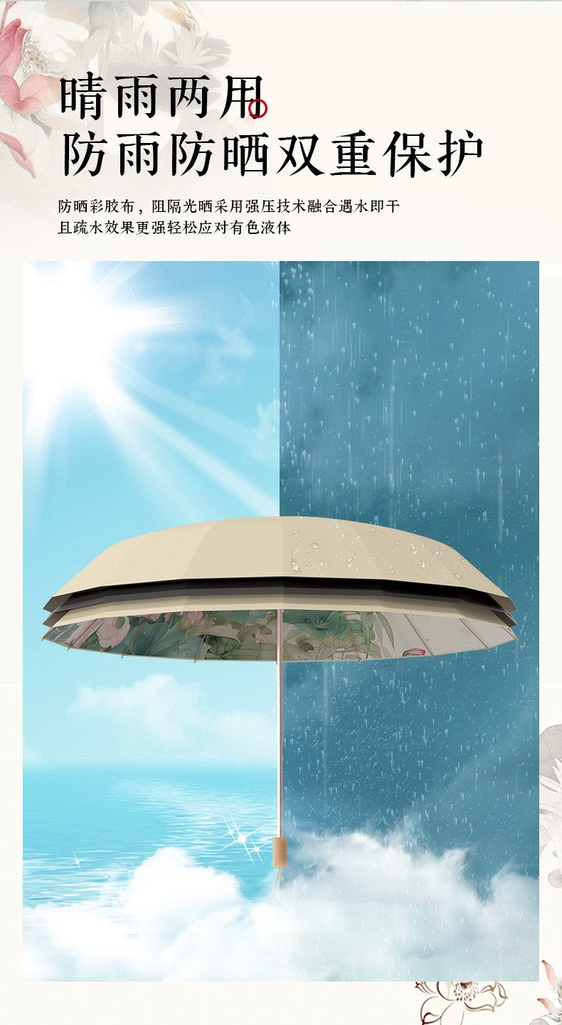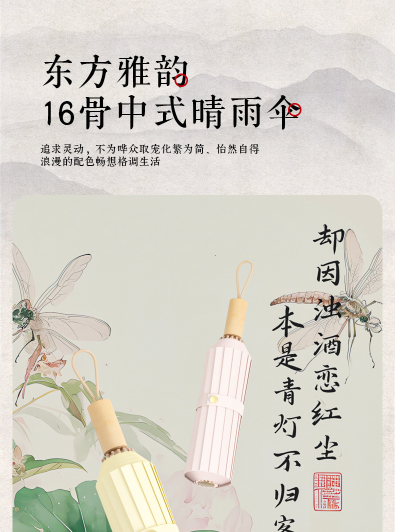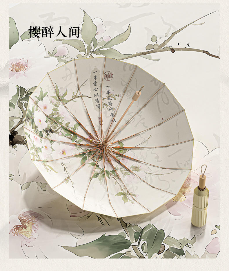 16 뼈 접는 우산 복고풍 중국 스타일 우산 수동 소품 우산 안티 UV 태양 보호 우산 도매 완전 자동