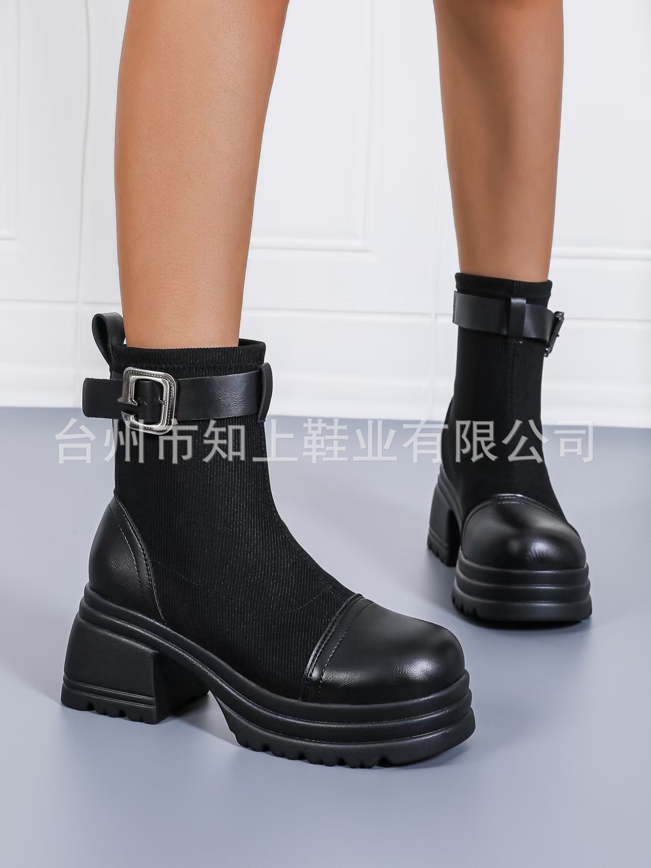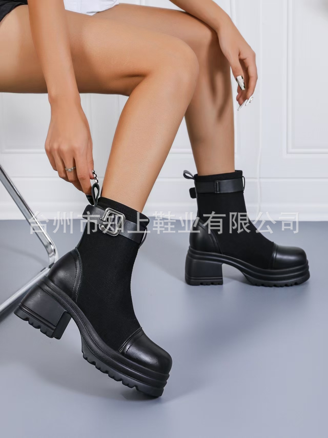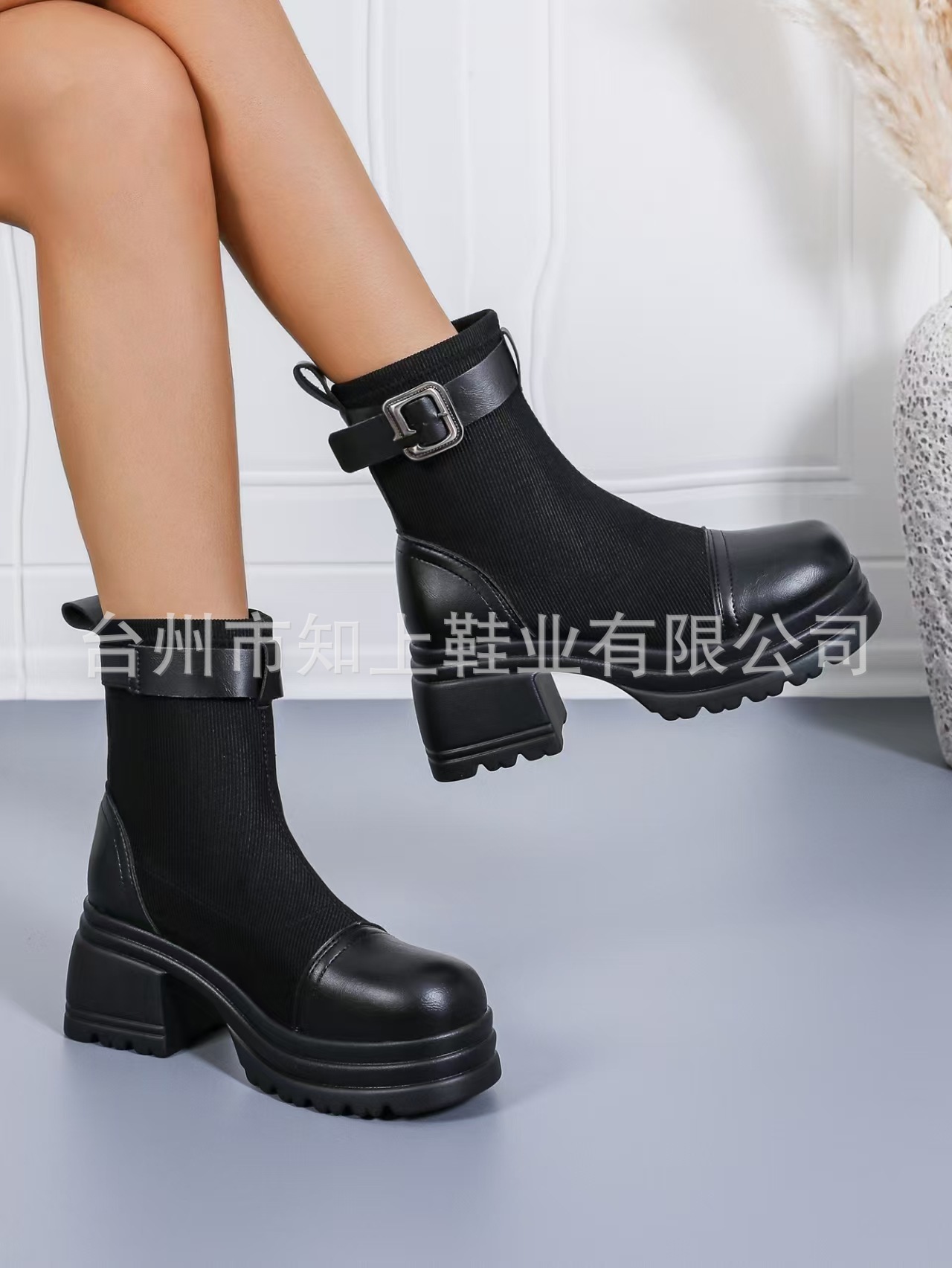 올스타 마틴 부츠 여자 가을과 겨울 새로운 2024 영국 스타일 레트로 미들 튜브 스트레치 얇은 부츠 두꺼운 바닥 마틴 부츠스토어 가기
