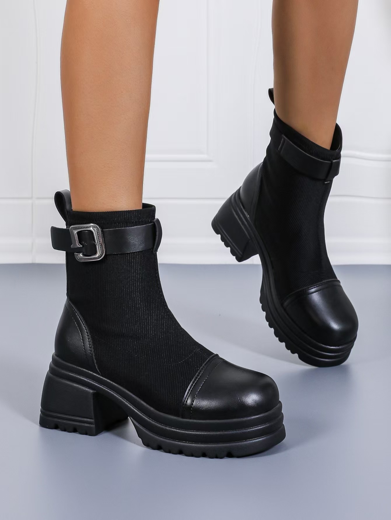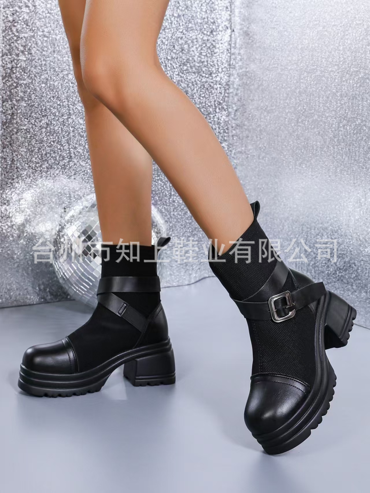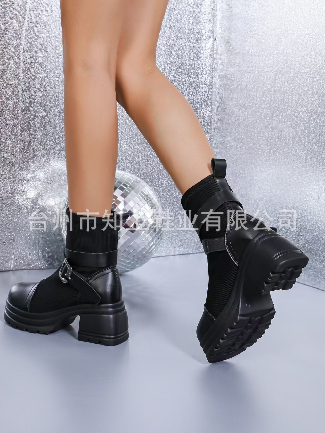 올스타 마틴 부츠 여자 가을과 겨울 새로운 2024 영국 스타일 레트로 미들 튜브 스트레치 얇은 부츠 두꺼운 바닥 마틴 부츠스토어 가기