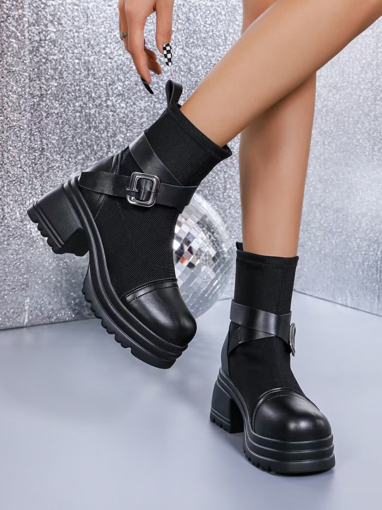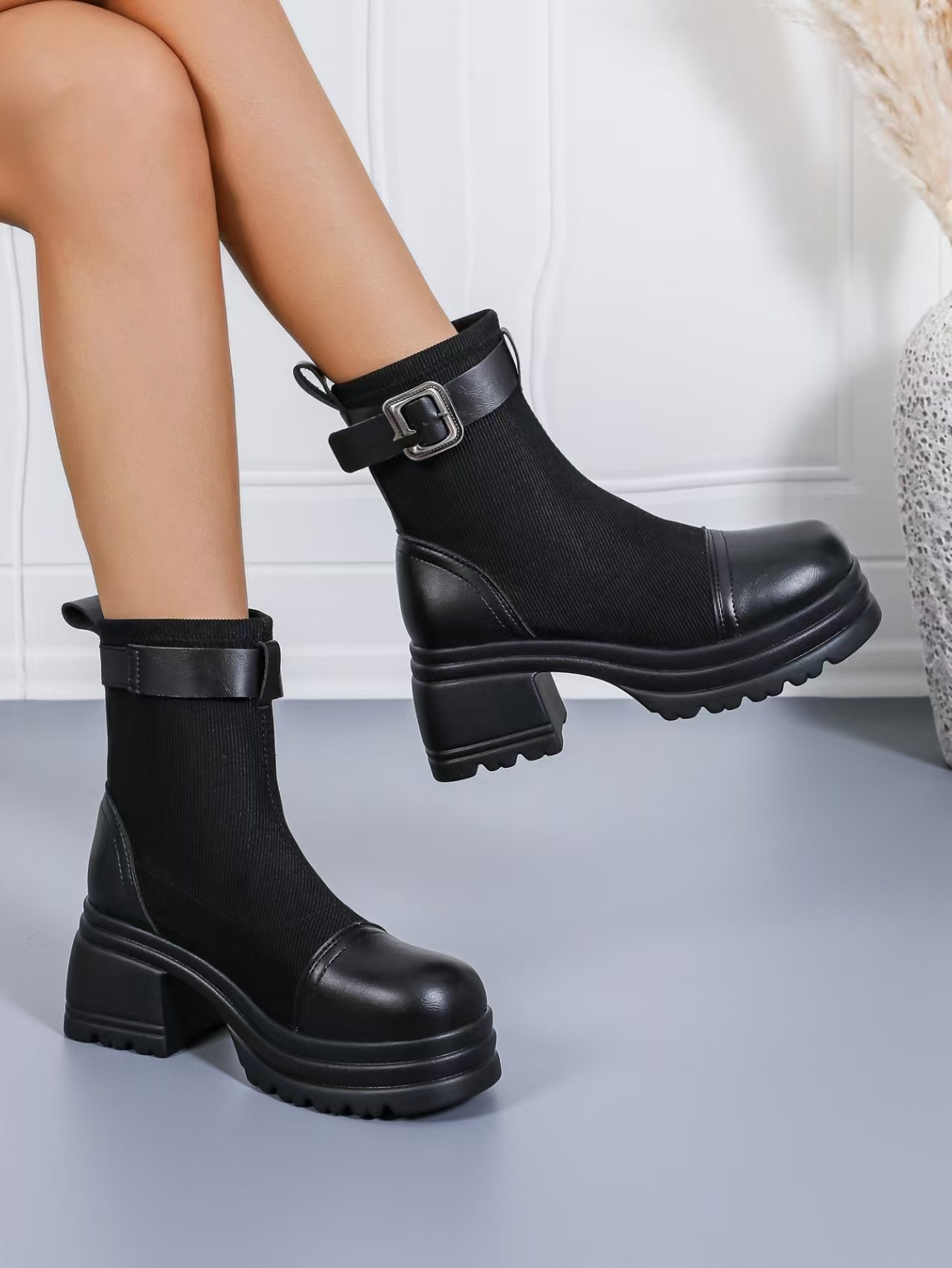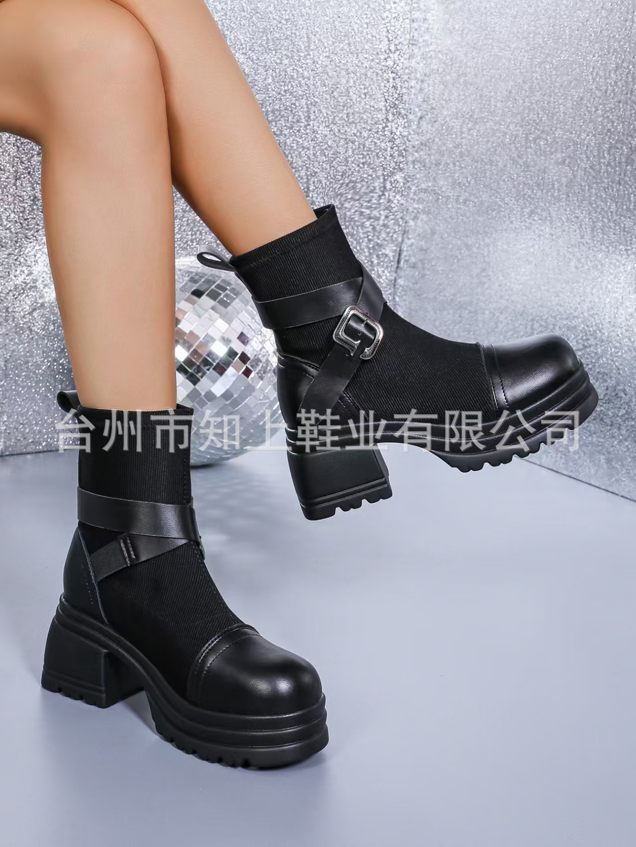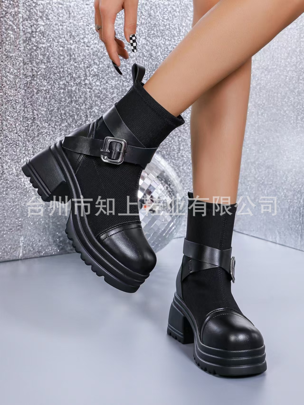 올스타 마틴 부츠 여자 가을과 겨울 새로운 2024 영국 스타일 레트로 미들 튜브 스트레치 얇은 부츠 두꺼운 바닥 마틴 부츠