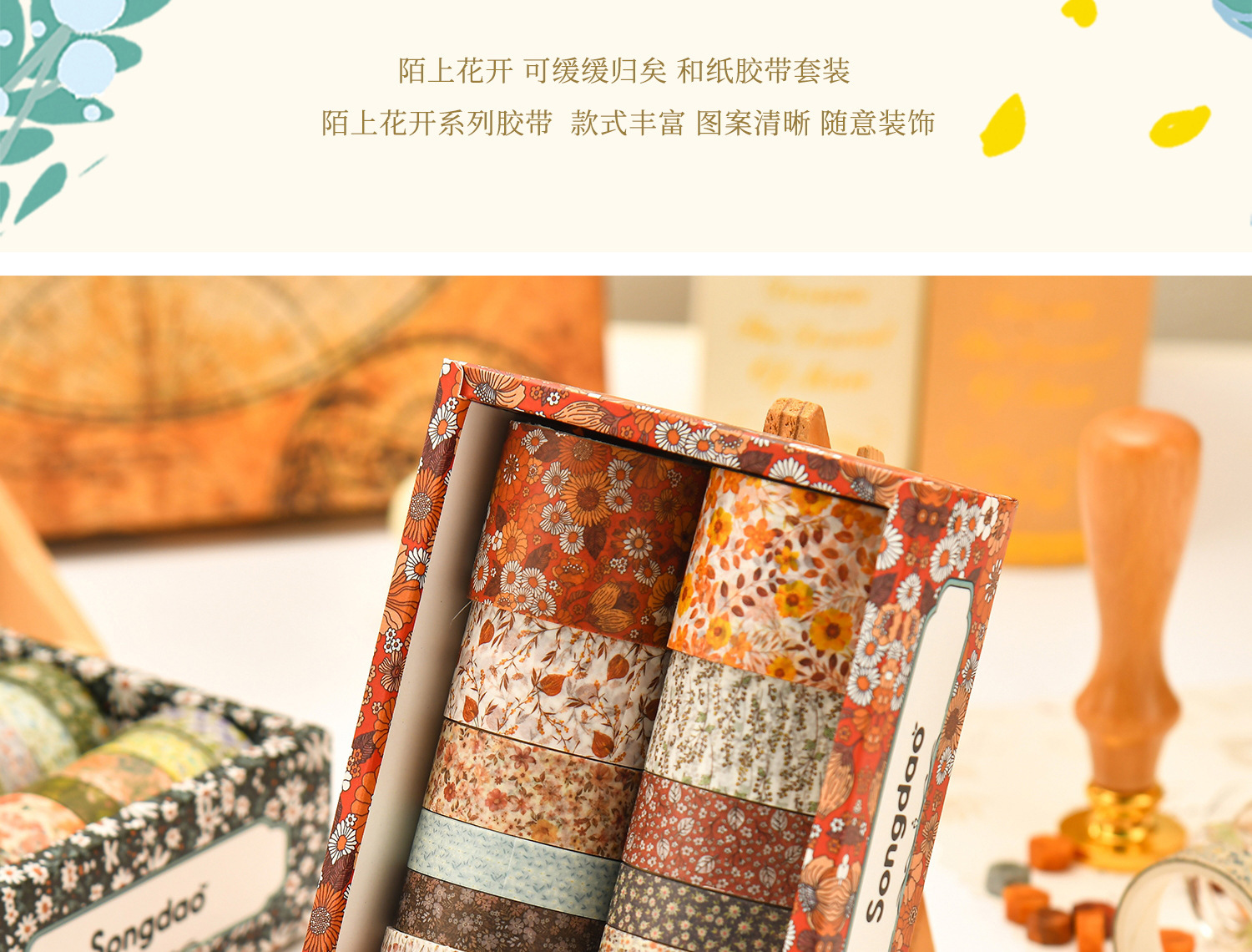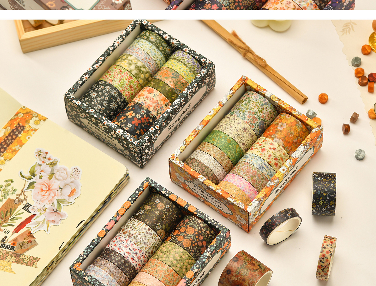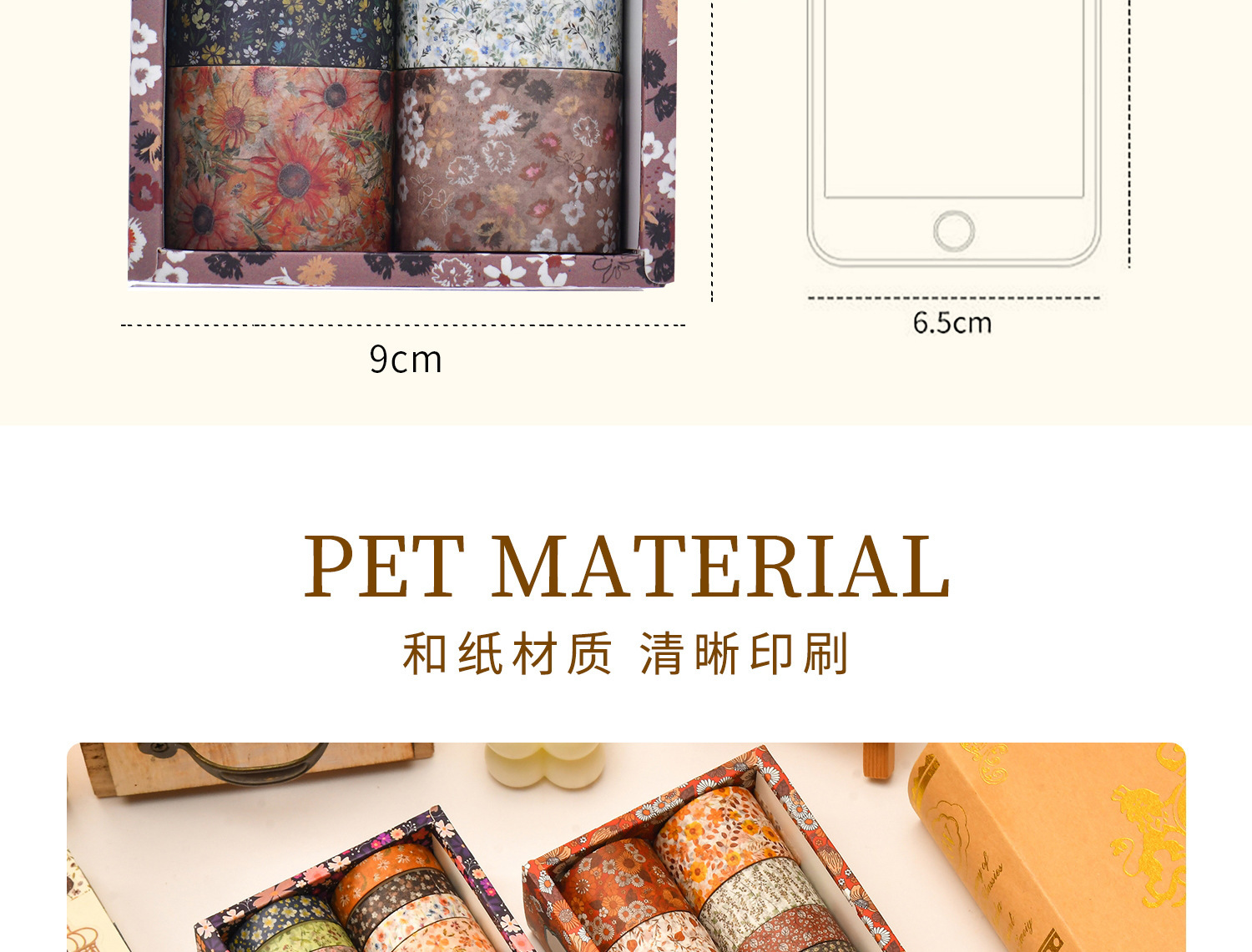 모든 것을 소비하는 꽃과 종이 테이프 선물 상자 세트 손 계정 DIY 복고풍 꽃 식물 기본 장식 스티커스토어 가기