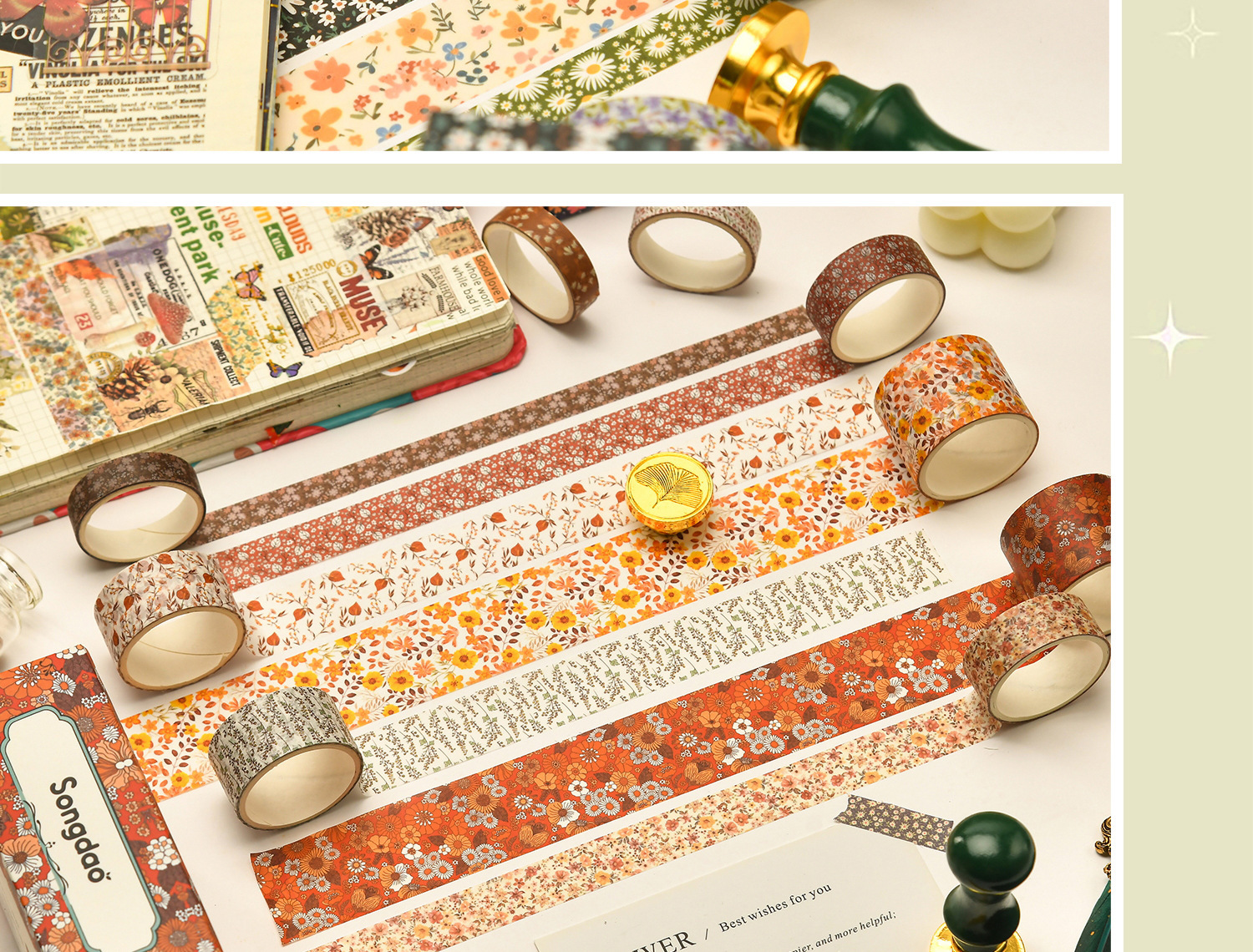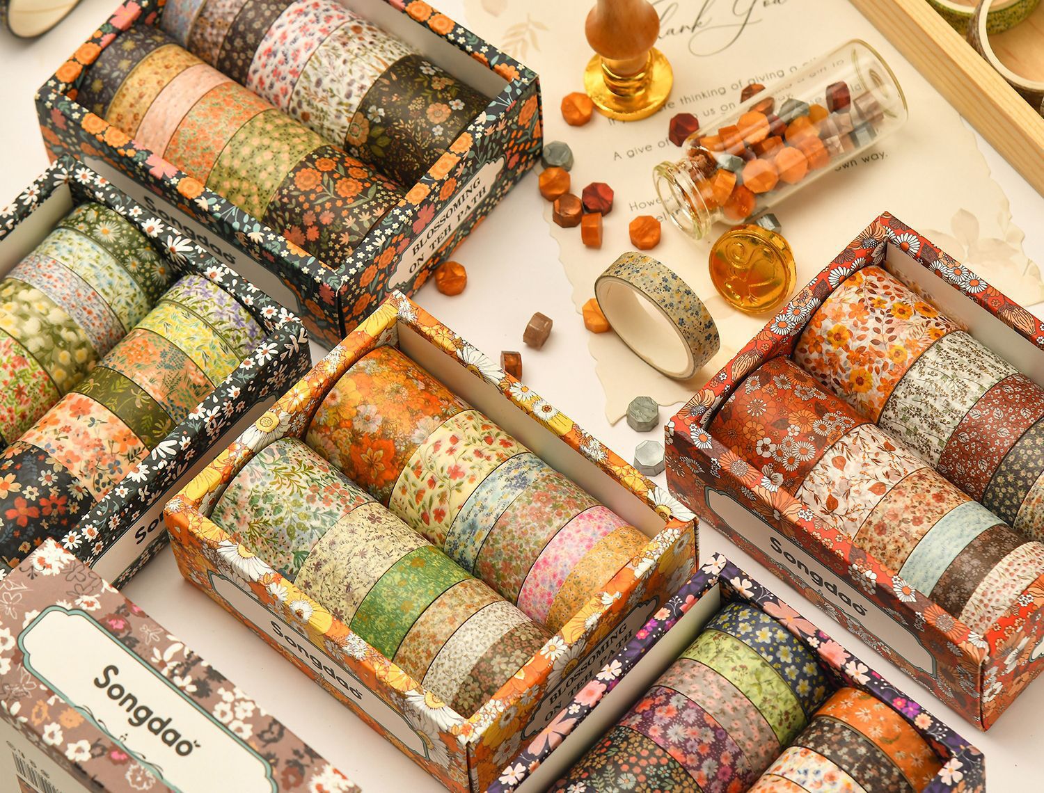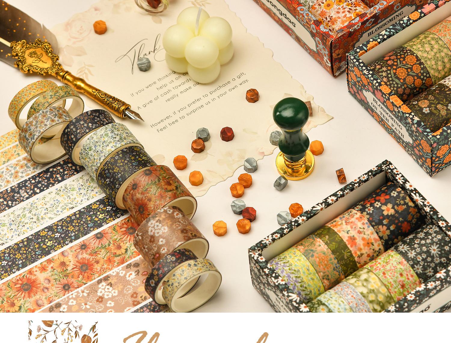 모든 것을 소비하는 꽃과 종이 테이프 선물 상자 세트 손 계정 DIY 복고풍 꽃 식물 기본 장식 스티커