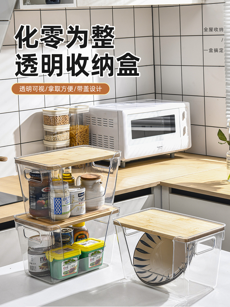 국경 간 가정용 보관 상자 뚜껑 투명 랙이있는 주방 조리대 조미료 병 다층 컵 마무리 쌓을 수 있습니다.스토어 가기