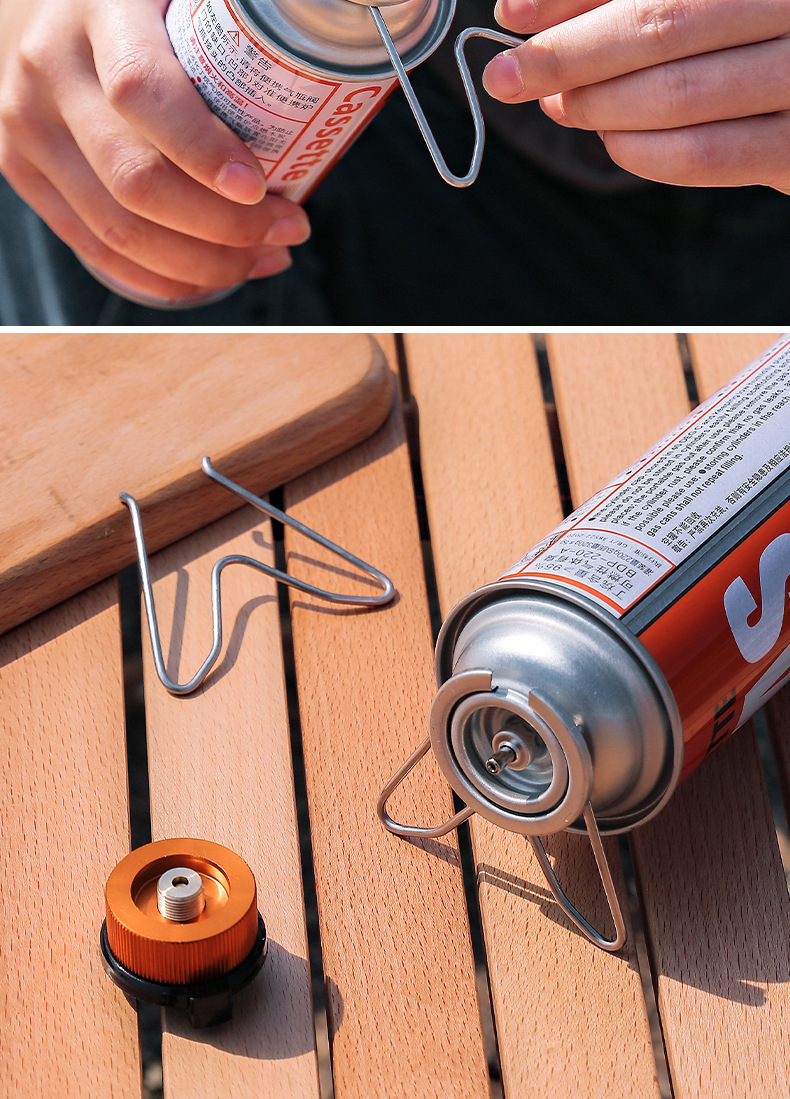 카드 형 가스 탱크 브래킷 캠핑 휴대용 스프링 긴 가스 탱크 지원 프레임 누설 방지 금속 고정 버클 도매스토어 가기