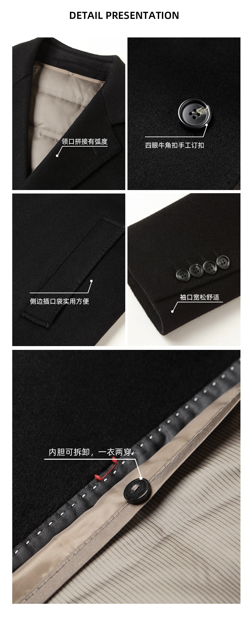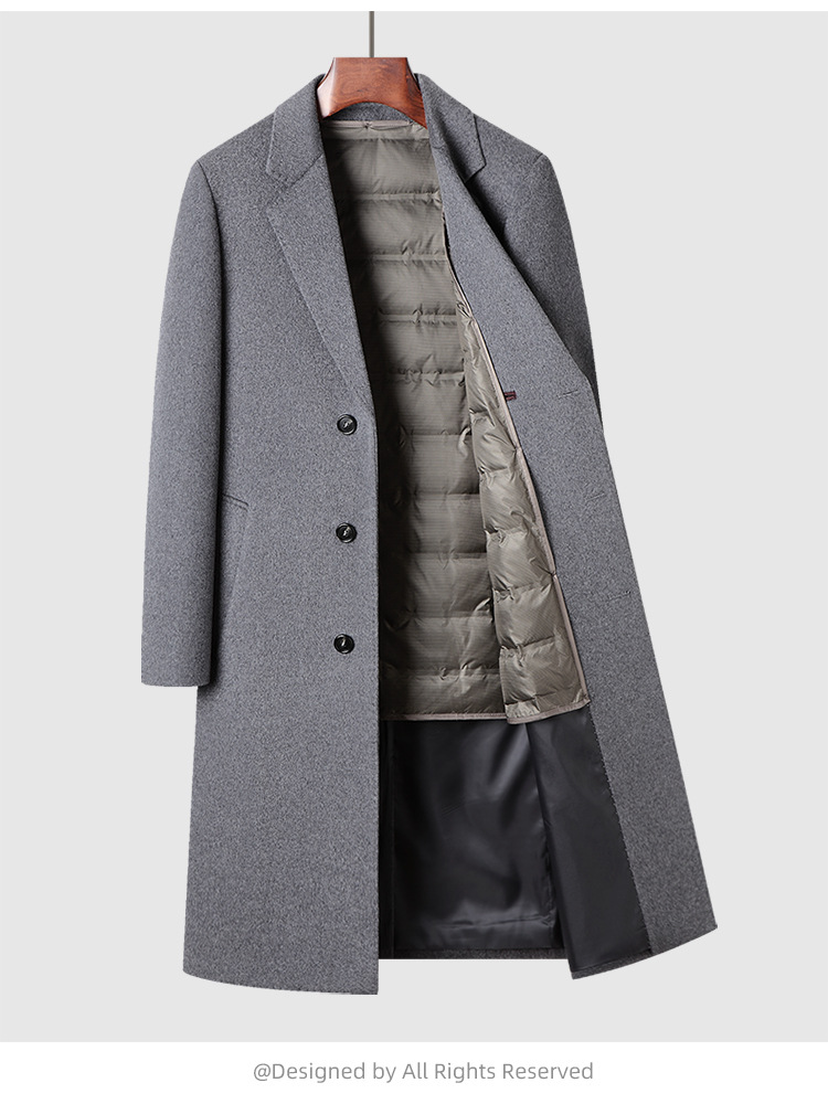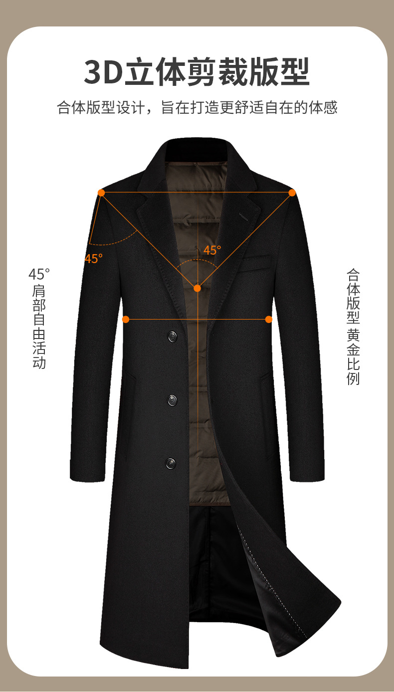 71.5% 울 코트 남성 가을, 겨울 90 탈착식 오리 다운 라이너 하이 엔드 슬림핏 윈드 브레이커 재킷