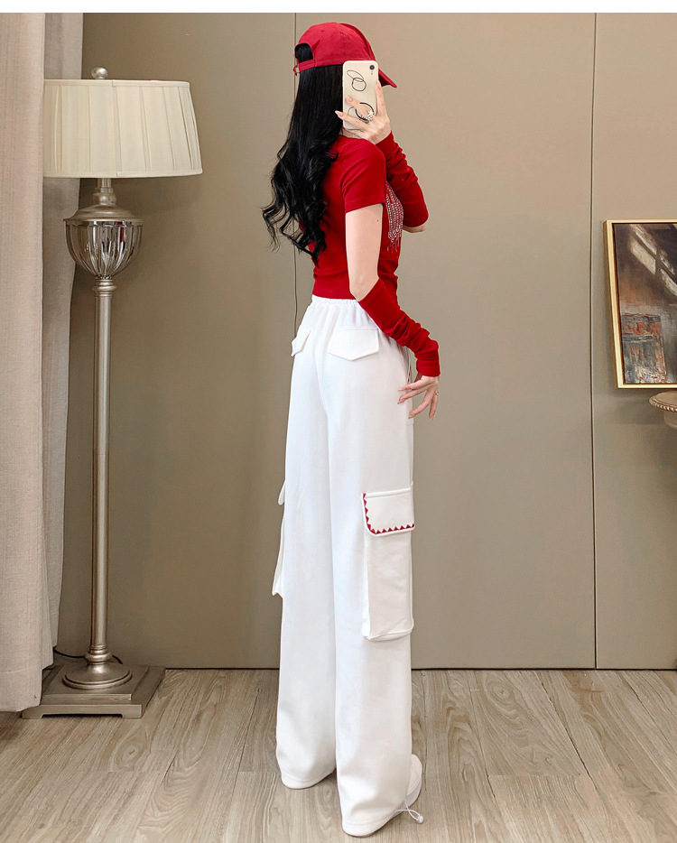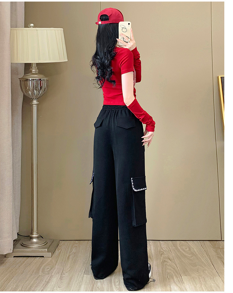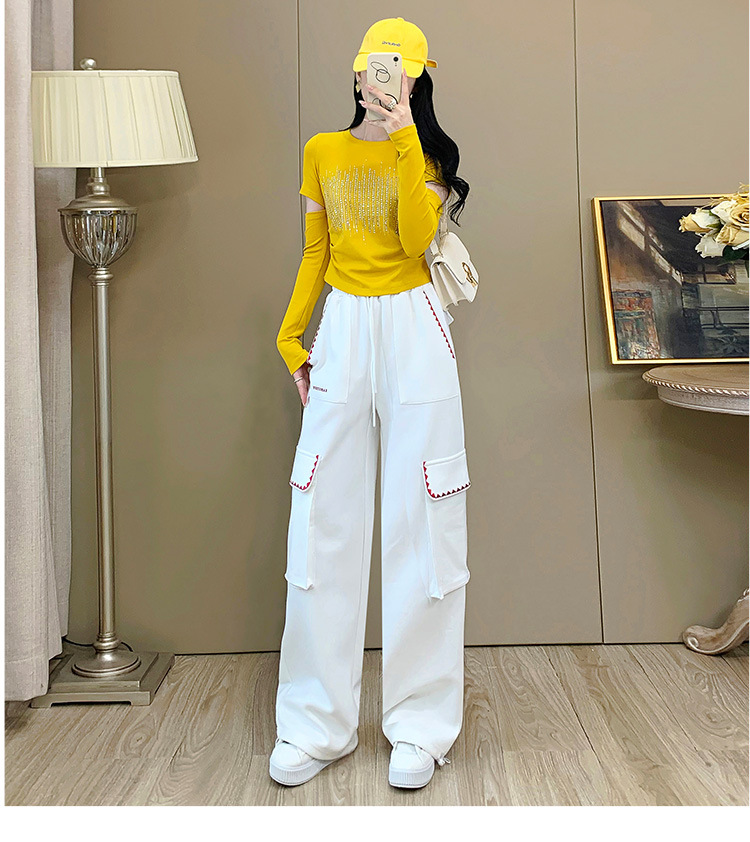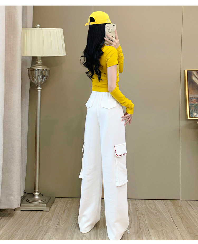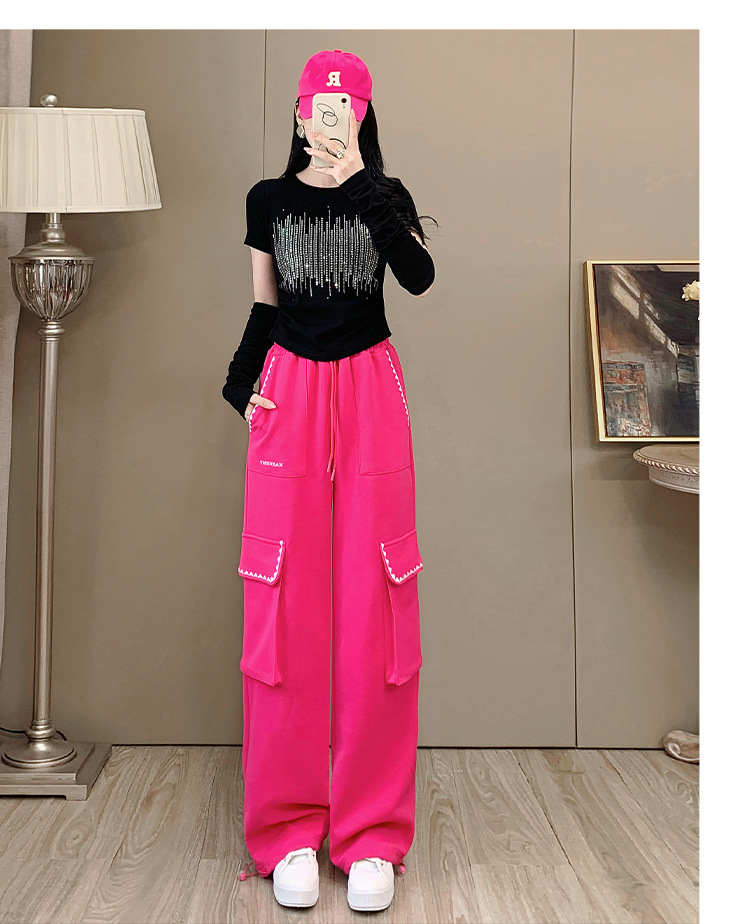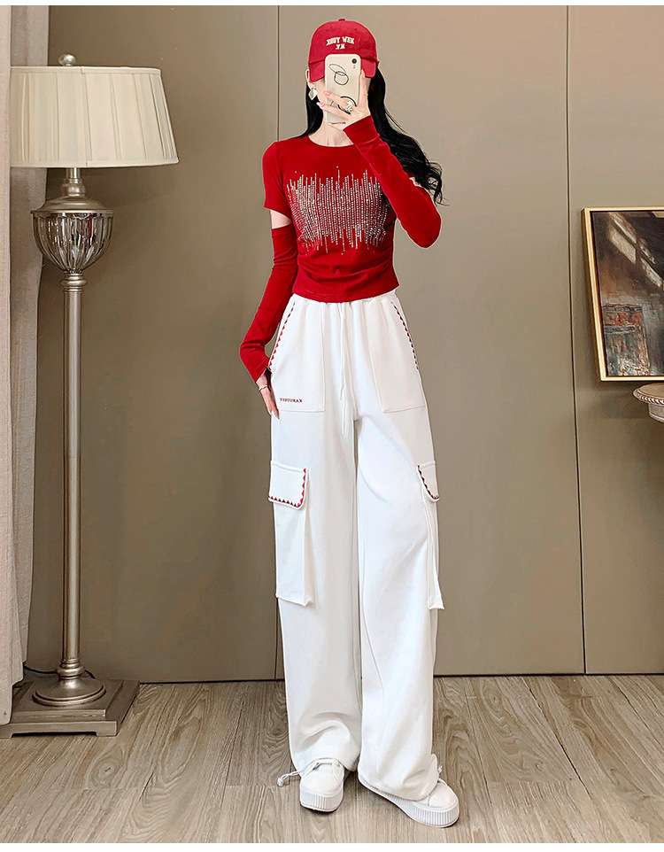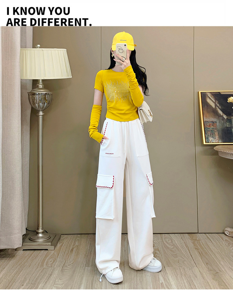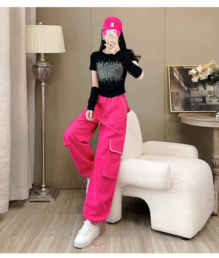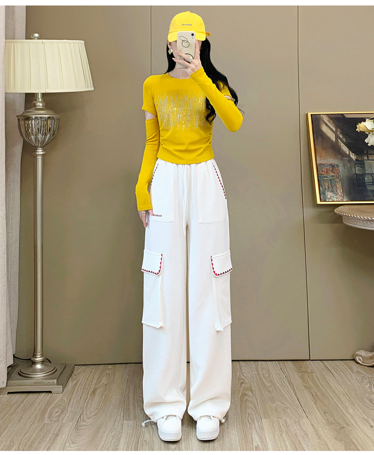 패션 스포츠 세트 여성의 가을과 겨울 2024 새로운 튀김 거리 패션 분해 소매 티셔츠 슬림 바지 투피스 세트스토어 가기