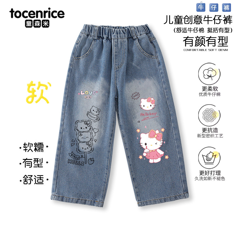 Kulomi 멜로디 어린이 청바지 옥 계피 개 소녀 봄과 가을 스트레이트 바지 소녀 캐주얼 바지 유행스토어 가기