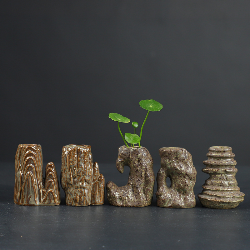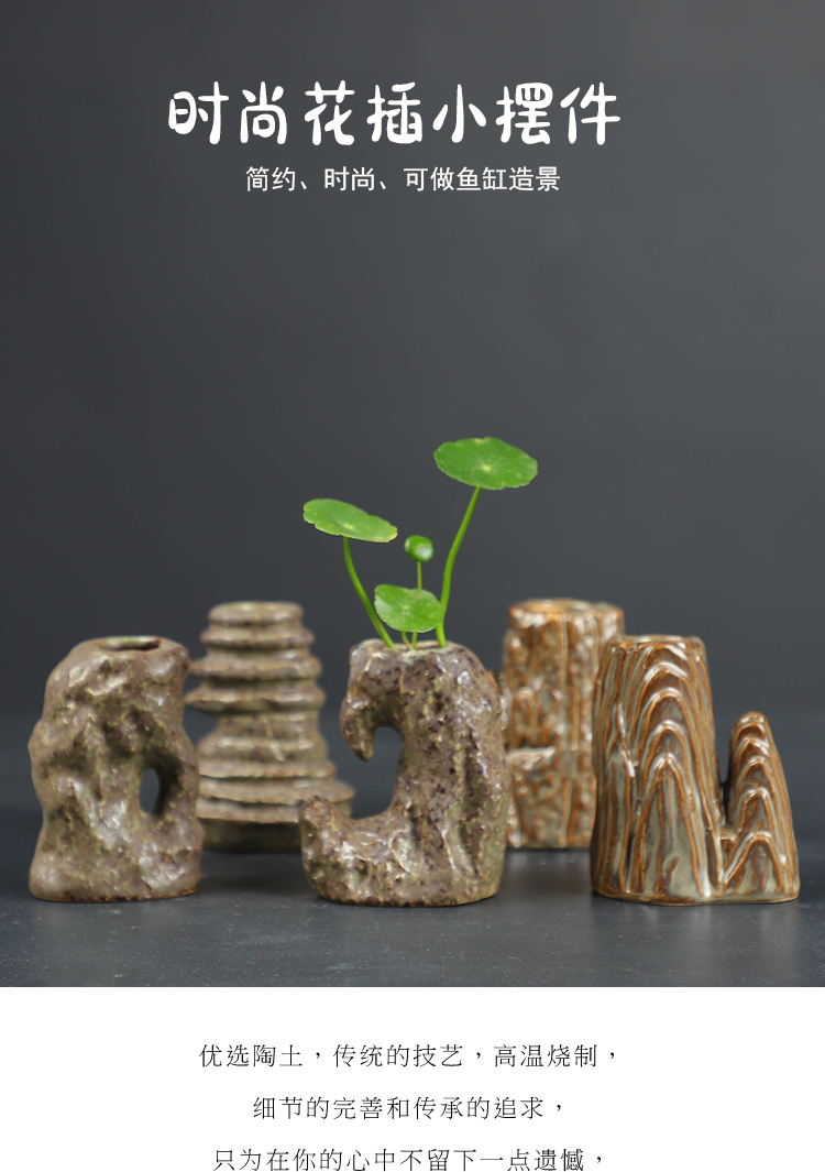 창조적 인 복고풍 작은 꽃병 세라믹 수경 미니 꽃 장식품 바위 돌 물고기 탱크 꽃 분재 조경 스페셜