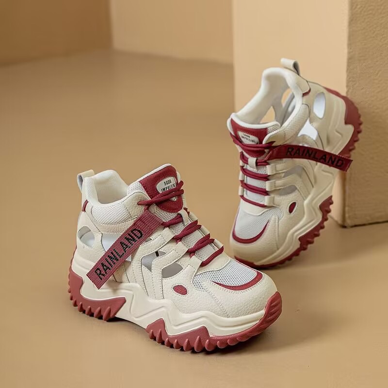 두꺼운 밑창 증가 Torre Shoes 여성 봄과 여름 2024 새로운 메쉬 올 매치 통기성 할로우 아웃 스포츠 캐주얼 화이트 샌들