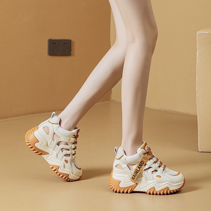 두꺼운 밑창 증가 Torre Shoes 여성 봄과 여름 2024 새로운 메쉬 올 매치 통기성 할로우 아웃 스포츠 캐주얼 화이트 샌들스토어 가기
