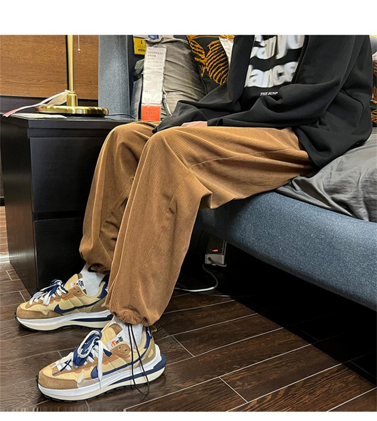 트렌디 한 일본 스타일 간단한 솔리드 컬러 스트레이트 코듀로이 캐주얼 바지 남자 하이 스트리트 루즈 패셔블 올 매치 스포츠 롱 바지스토어 가기