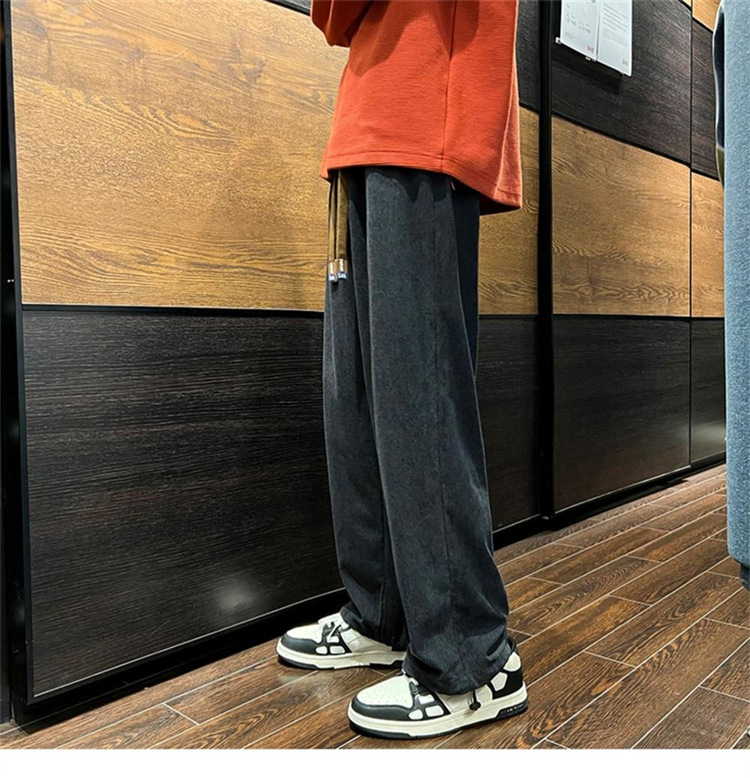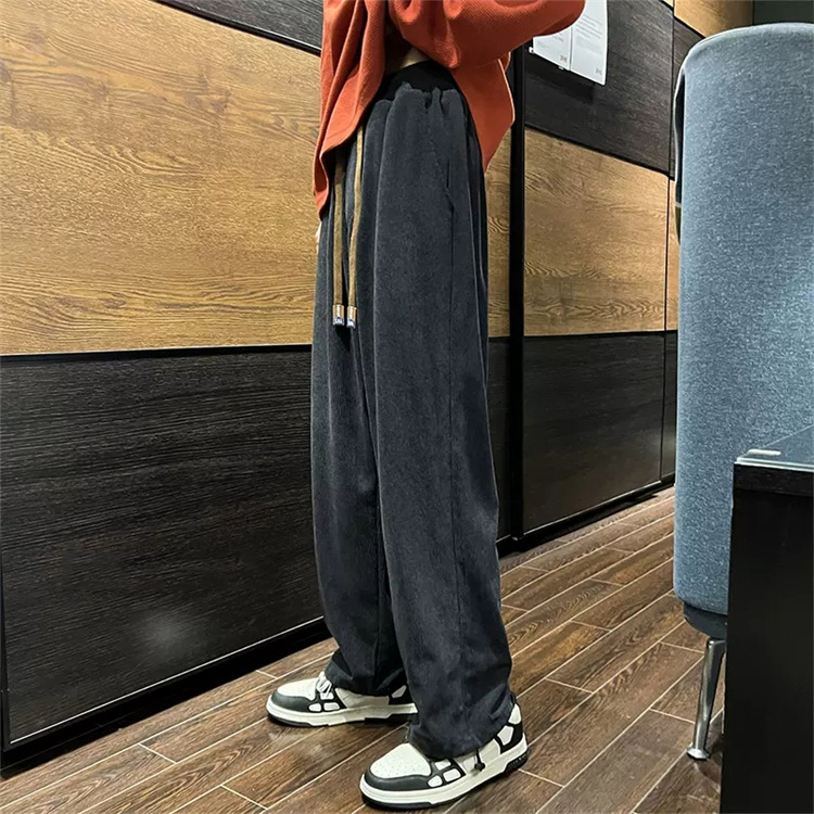 트렌디 한 일본 스타일 간단한 솔리드 컬러 스트레이트 코듀로이 캐주얼 바지 남자 하이 스트리트 루즈 패셔블 올 매치 스포츠 롱 바지