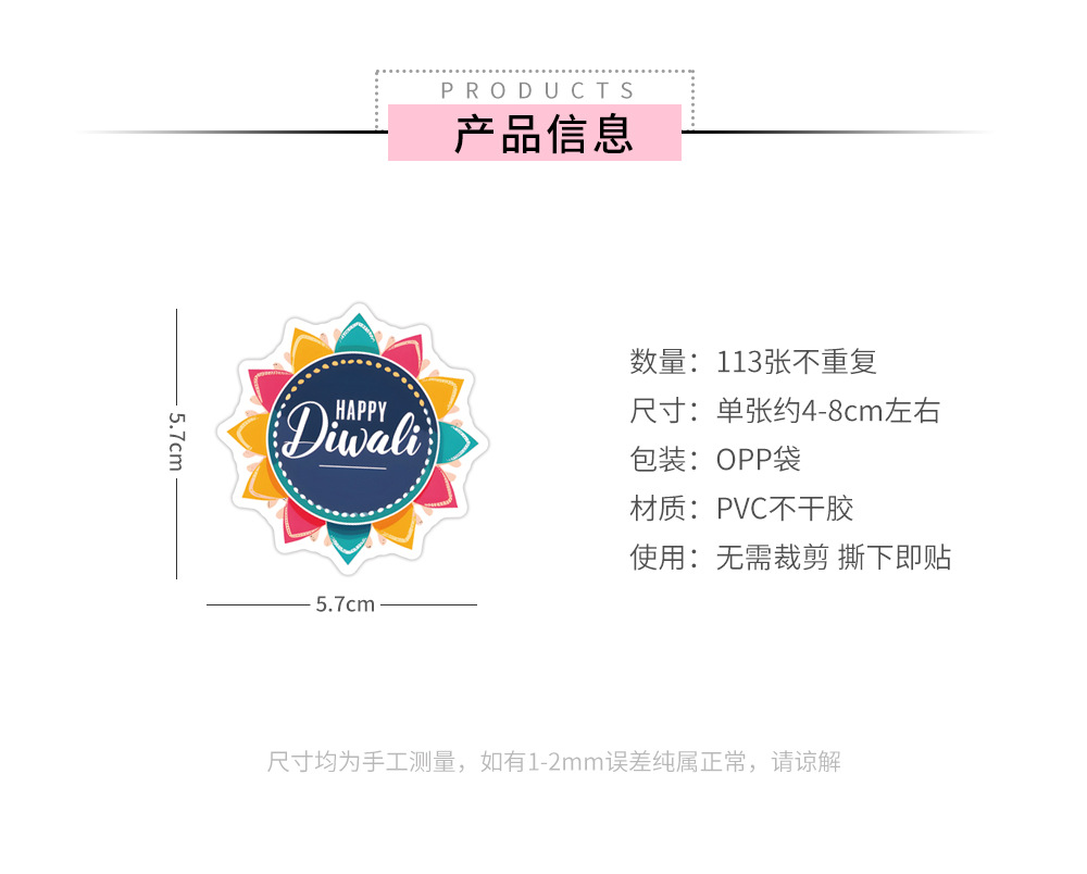 110 새로운 해피 디 왈리 낙서 스티커 장식 수하물 휴대 전화 국경 방수 스티커 도매