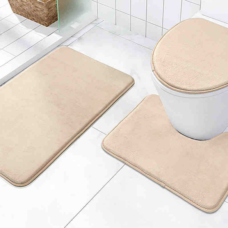 아마존 화장실 3 피스 매트 간단한 단색 산호 양털 화장실 매트 가정용 욕실 내마모성 매트스토어 가기