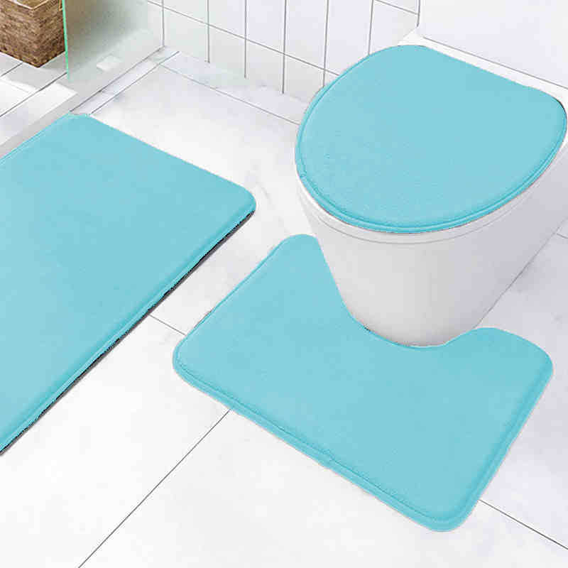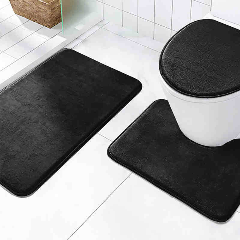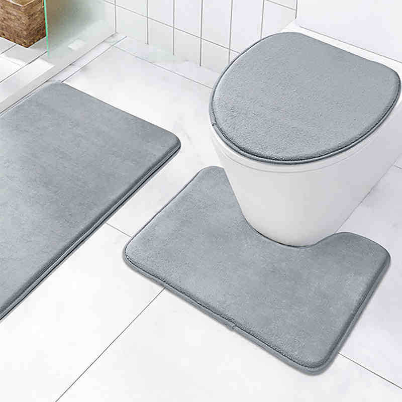 아마존 화장실 3 피스 매트 간단한 단색 산호 양털 화장실 매트 가정용 욕실 내마모성 매트