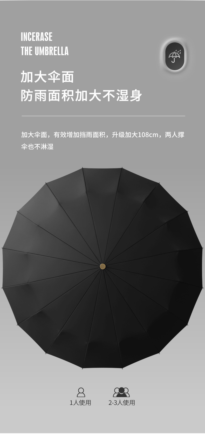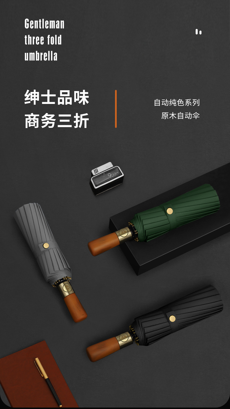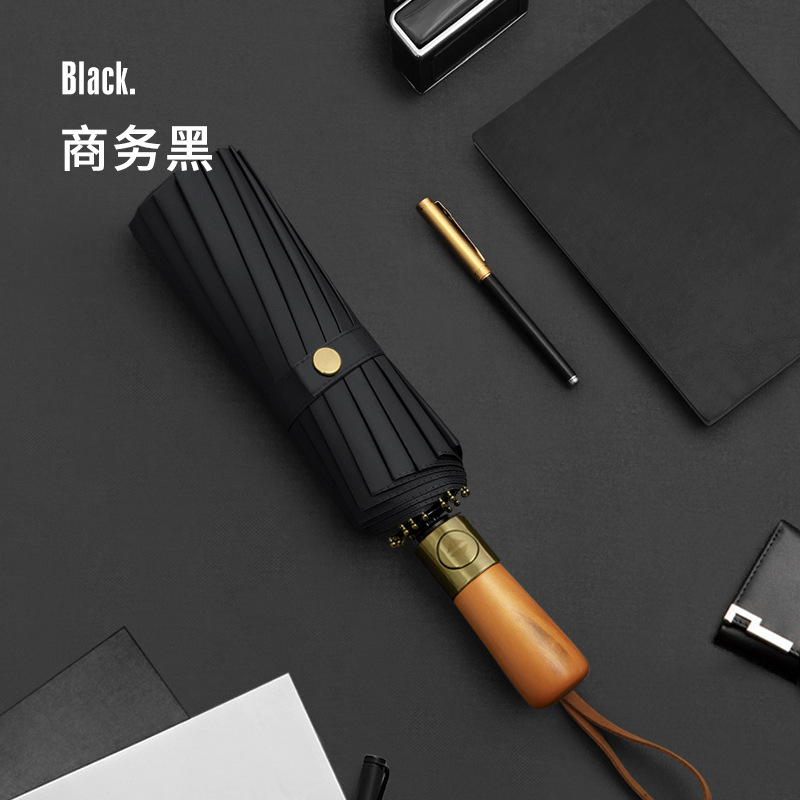 16 뼈 나무 손잡이 자동 우산 맑고 비 이중 사용 남성 하이 엔드 비즈니스 블랙 고무 선 스크린 햇살 우산 맞춤 로고