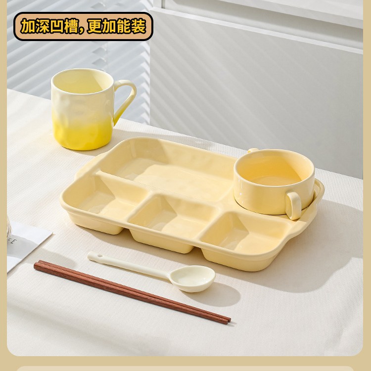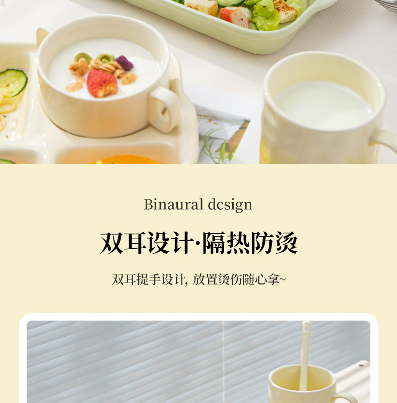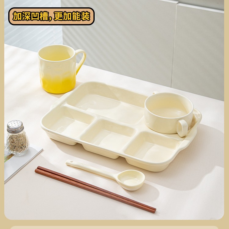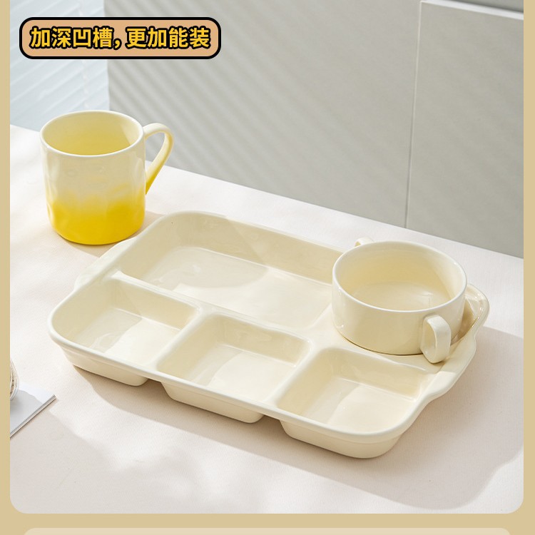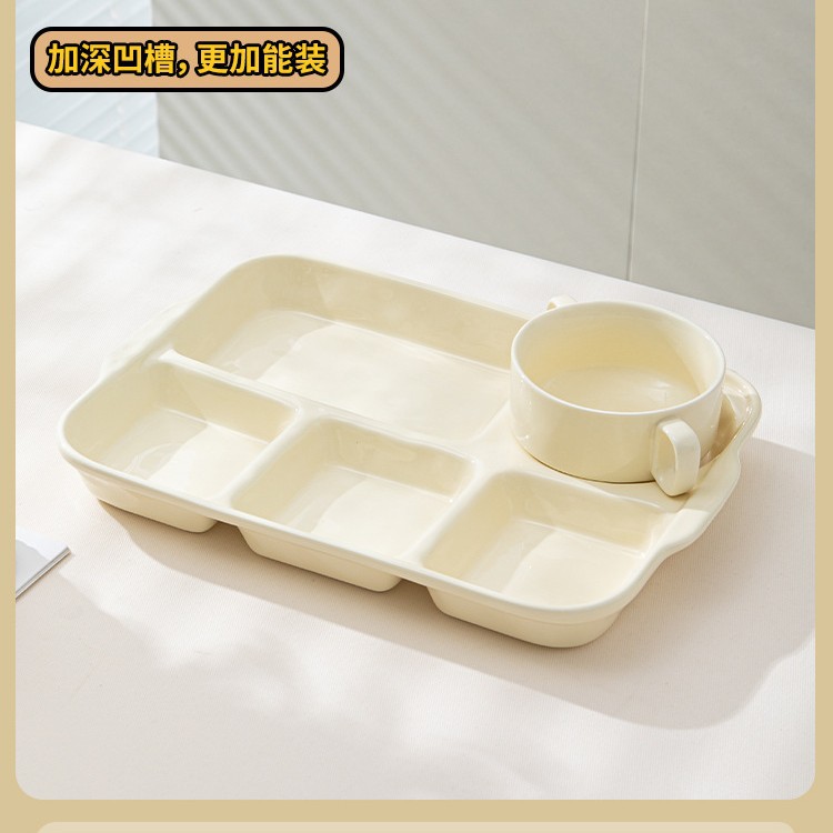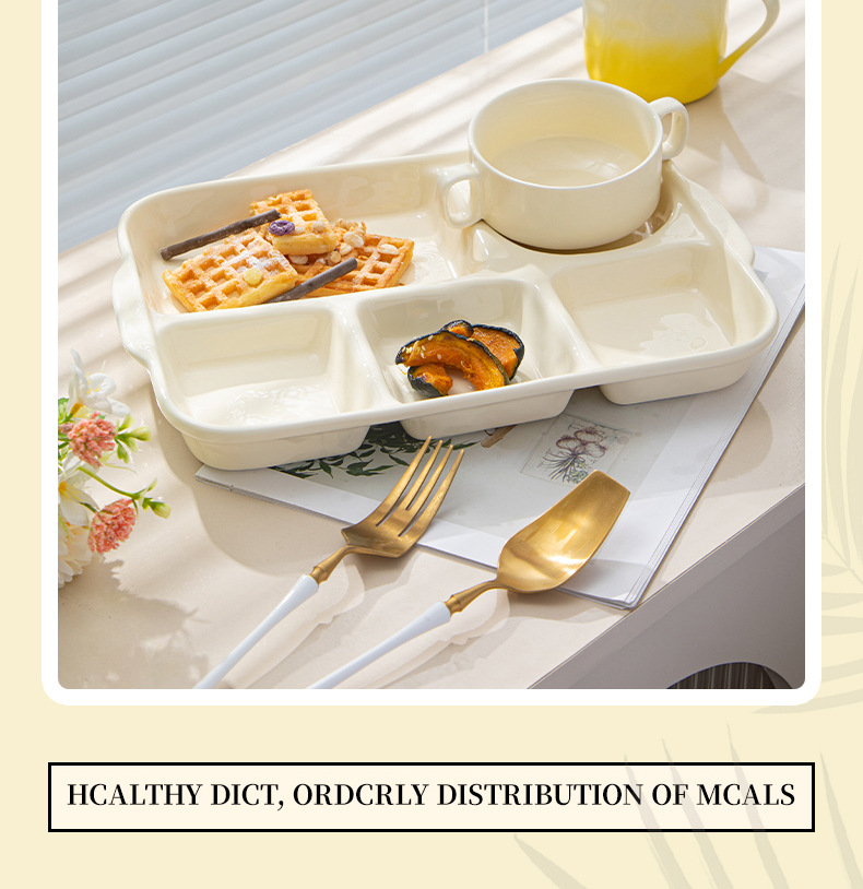 • 밀크 화이트 - 5칸 서빙 접시 + 이중 귀 그릇 + 아침 식사 컵 [깊은 홈으로 업그레이드]
