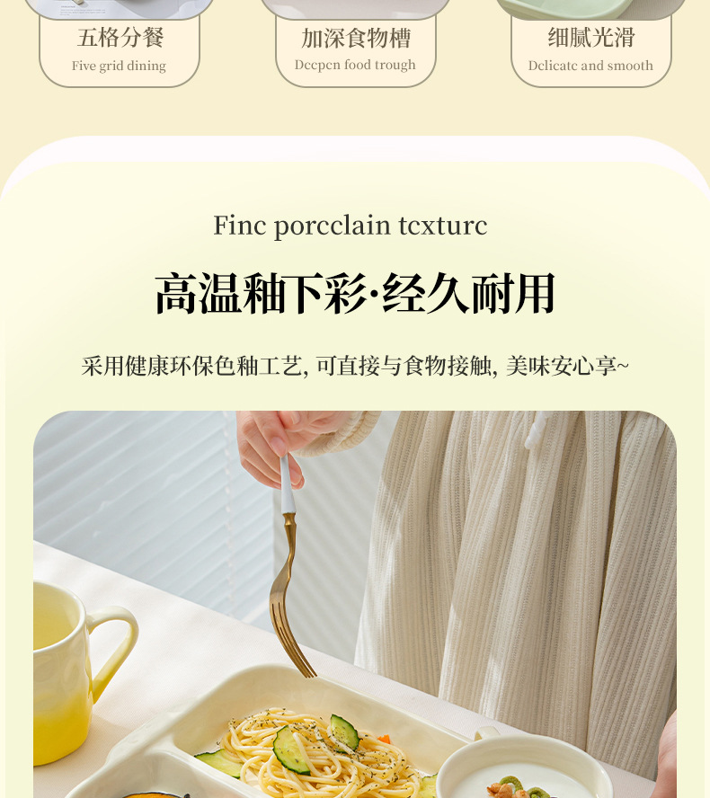 • 커스터드 - 5칸 서빙 접시 + 이중 귀 그릇 [깊은 홈으로 업그레이드]