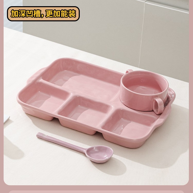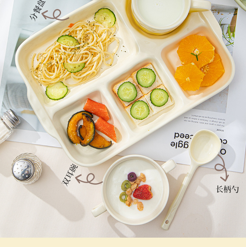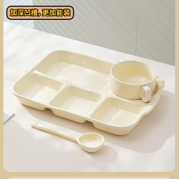 • 밀크 화이트 - 5칸 서빙 접시 + 이중 귀 그릇 + 스푼 [깊은 홈으로 업그레이드]