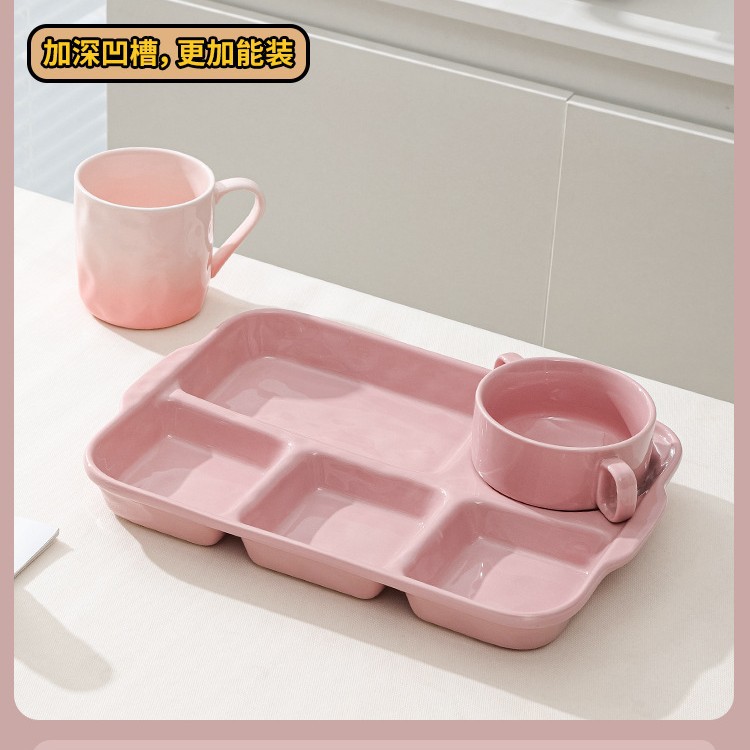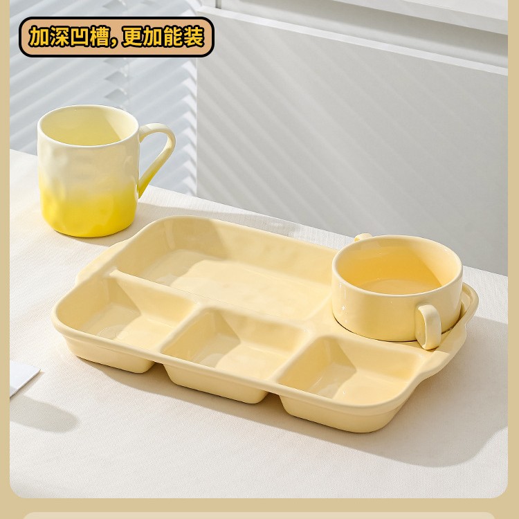 • 커스터드 - 5칸 서빙 접시 + 이중 귀 그릇 + 아침 식사 컵 [깊은 홈으로 업그레이드]