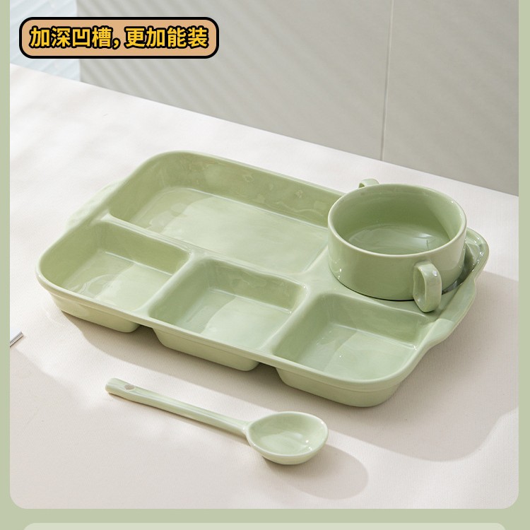 • 밀크 그린 - 5칸 서빙 접시 + 이중 귀 그릇 + 스푼 [깊은 홈으로 업그레이드]