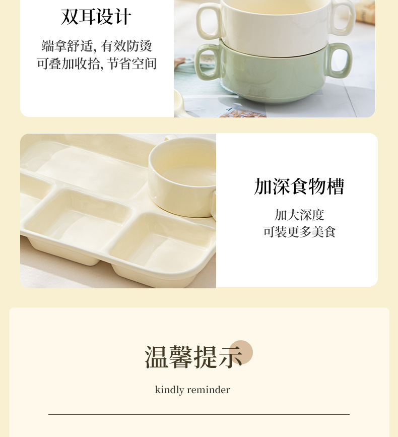• 밀크 화이트 - 5칸 서빙 접시 + 이중 귀 그릇 [깊은 홈으로 업그레이드]