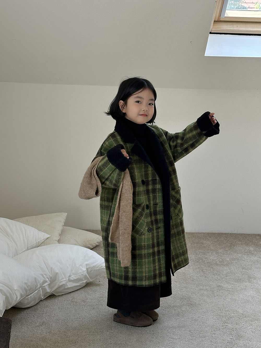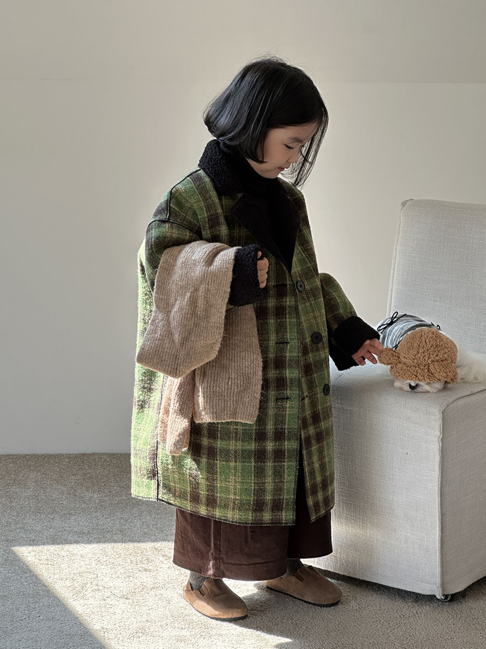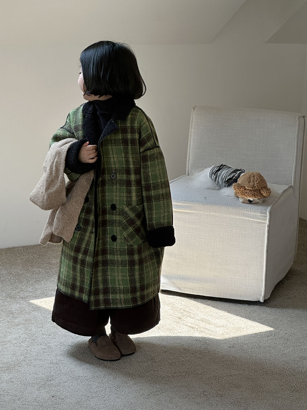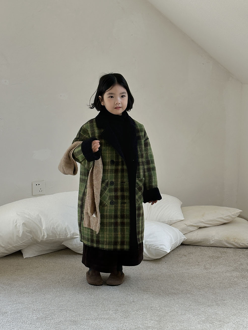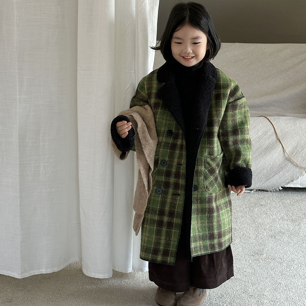 한국 스타일 아동복 2025 가을 겨울 신상 여아 롱 모직 코트 311 여아용 세련된 양면 모직 자켓스토어 가기
