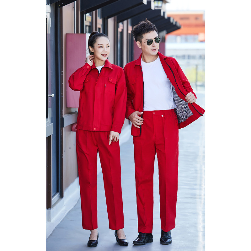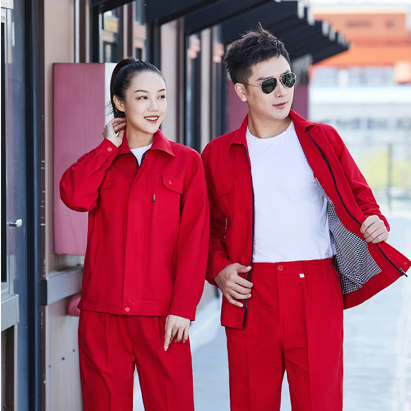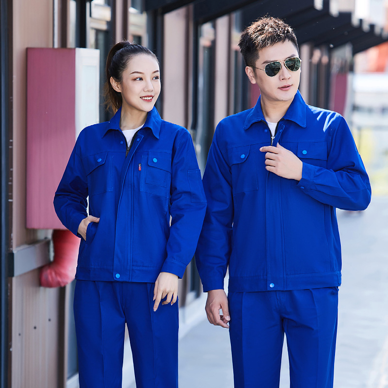 봄과 가을 순면 작업 옷 세트 더블 레이어 작업 서비스 식품 기계 수리 용접공 사이트 전원 그리드 공장 작업장 인쇄스토어 가기